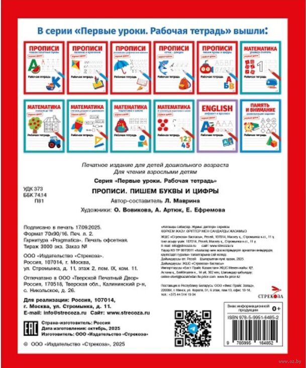 Рабочая тетрадь "Прописи. Пишем буквы и цифры" предназначена для занятий с детьми дошкольного возраста. В ней представлены упражнения на отработку навыков написания букв и цифр.