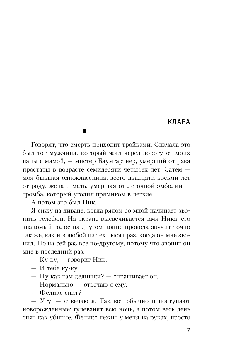 Раздираемая горем и навязчивой мыслью, что гибель Ника – не случайность, Клара отчаянно ищет правду. Кто мог желать смерти ее мужу? И, главное, почему? Ради ответов она готова на все – и очень скоро узнает, что правда – лишь начало этой запутанной истории, полной тайн и обмана.