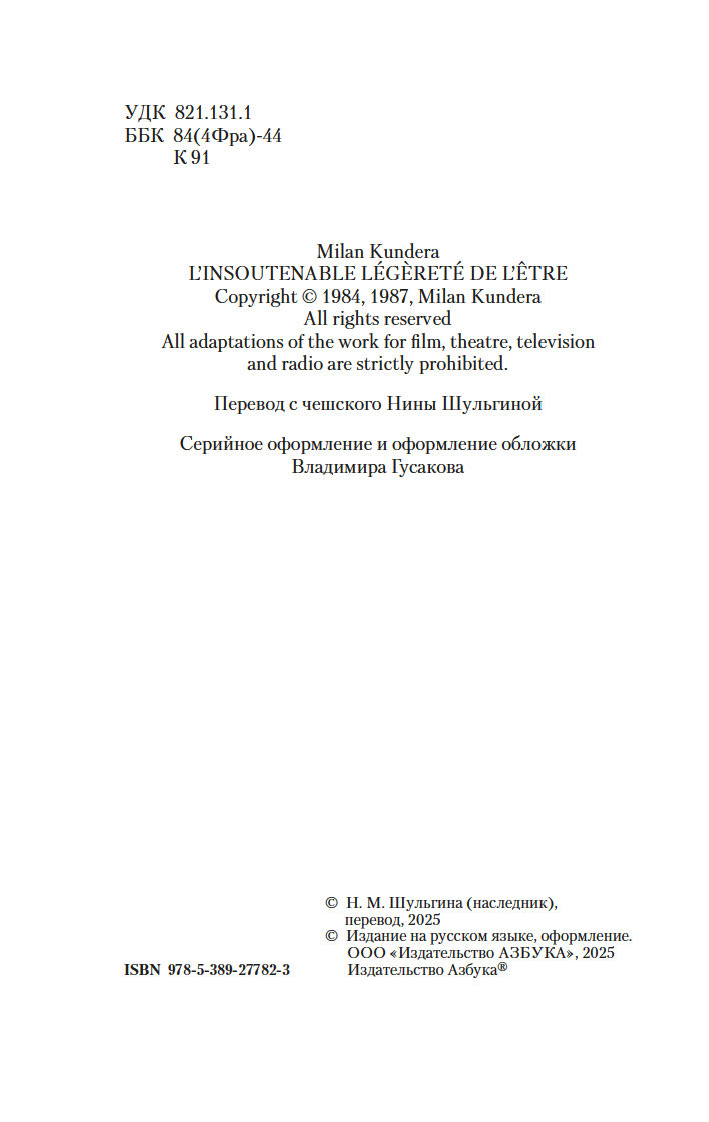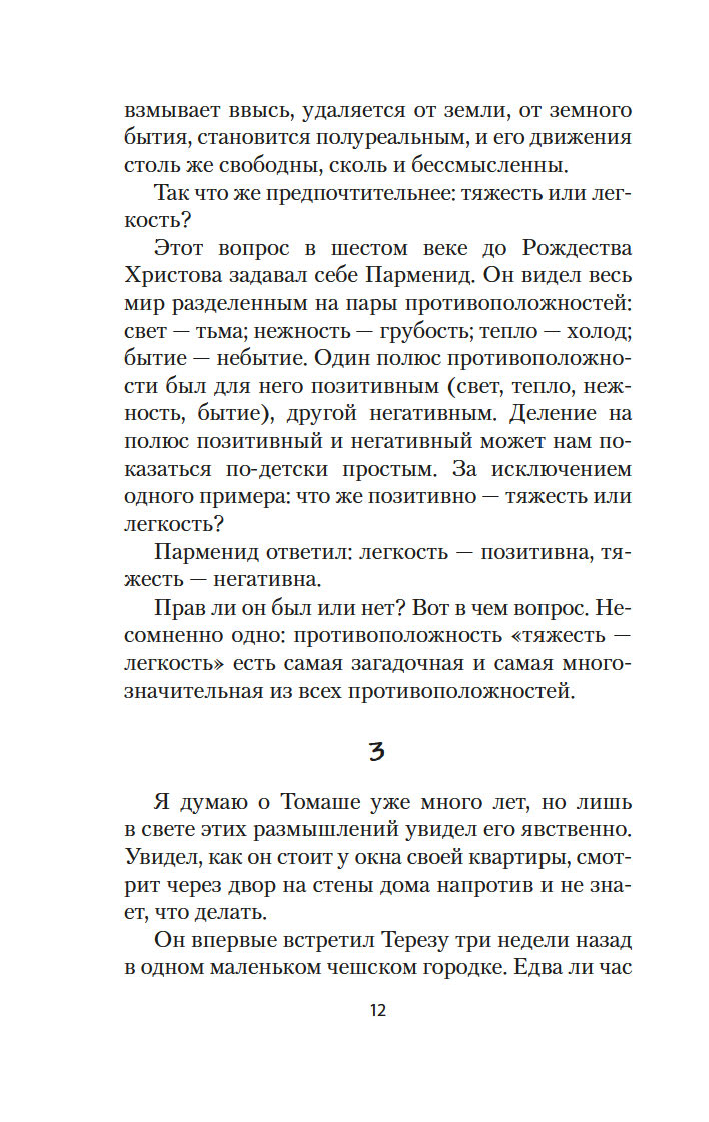 "Невыносимая легкость бытия" – самый знаменитый роман Милана Кундеры, одна из вершин литературы XX века. Книга о любви и непростых человеческих отношениях. Автор пишет о непримиримой двойственности тела и души, о лабиринте возможностей, по которому блуждают герои, проживая свою единственную жизнь…