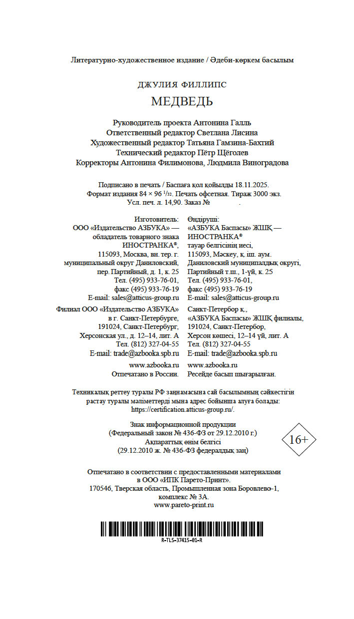 | Изготовитель | ООО "Издательство "Иностранка". 109017, РФ, г. Москва, ул. Пятницкая, 41 |
