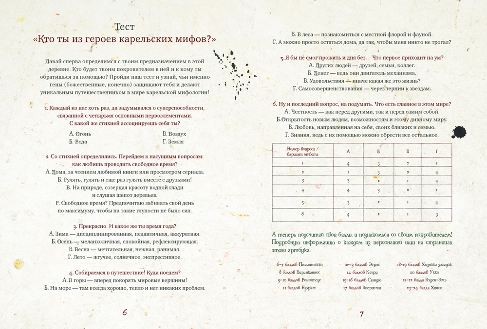 Этот уникальный артбук для вдохновения и творчества предлагает любому желающему открыть дверь в дивный мир карело-финской мифологии, полный таинственных существ и захватывающих приключений. Здесь оживают древние герои и духи мест, готовые поделиться своими секретами. Вы не просто читатель – вы активный участник: пройдите тест и узнайте своего покровителя, раскрашивайте любимых персонажей, придумывайте собственные сюжеты, решайте увлекательные задачи и готовьте блюда по исконно карельским рецептам! Каждая страница дарит новые возможности проявить фантазию и почувствовать себя частью богатой народной культуры. Готовьтесь отправиться в путешествие по мистическим уголкам Карелии, познакомиться с могущественным хозяином леса Хийси, разгадать хитрые загадки Хозяйки загадок и услышать голос грозового бога Укко. Этот артбук ждет именно вас – станьте частью древней истории прямо сейчас!