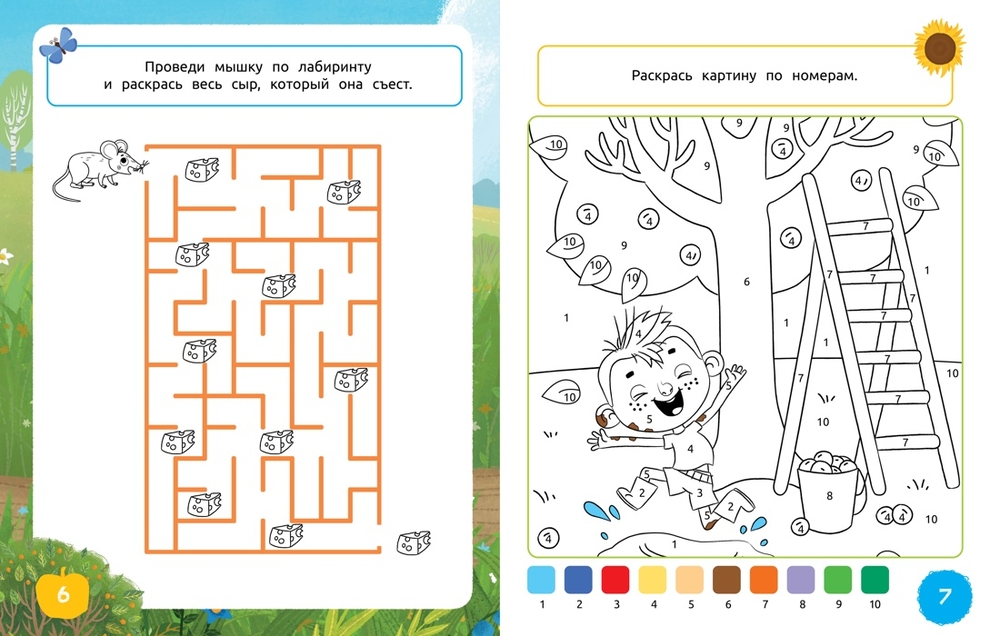 С этой раскраской ваш ребёнок не соскучится. Каждая страница – это весёлое задание: