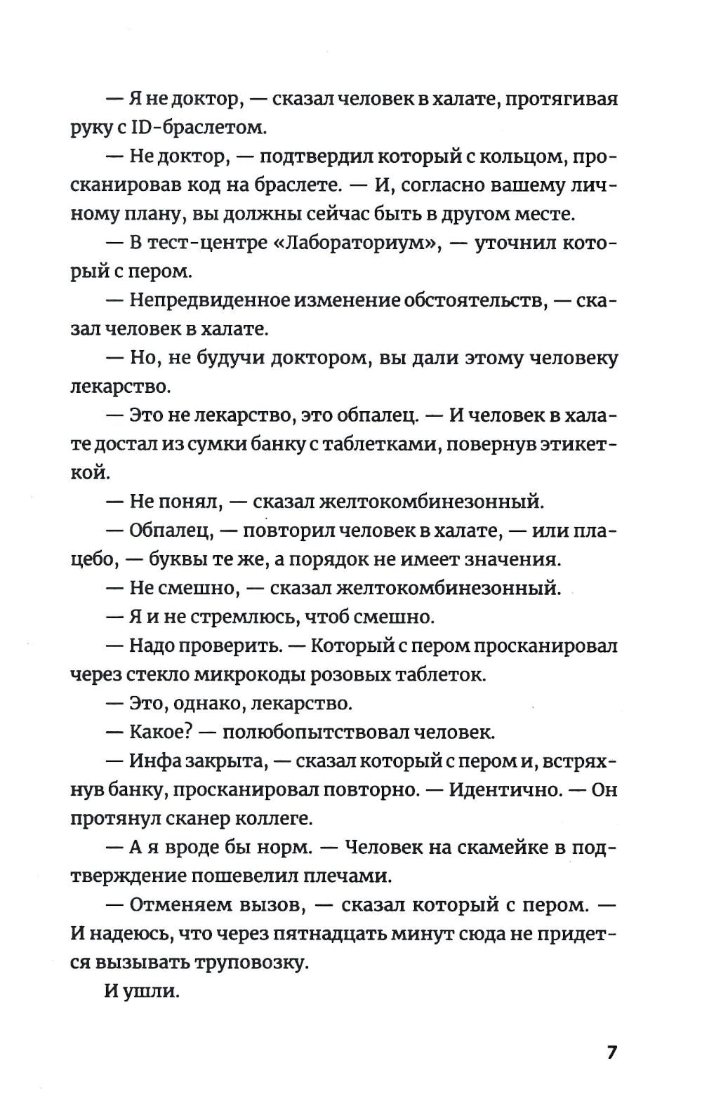 Здесь порядок превыше всего, и каждый начинает свой день с составления личного плана. Но когда лаборанту Филиппу попадает в руки лекарство, в условиях эпидемии способное спасти тысячи жизней, оказывается, что его существование никак не вписывается в этот самый порядок. В попытках легализовать чудесное средство "суперзаконопослушный" лаборант оказывается подобен герою Кафки, блуждающему в лабиринтах Борхеса.