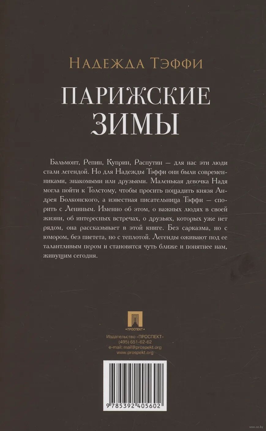 Бальмонт, Репин, Куприн, Распутин – для нас эти люди стали легендой. Но для Надежды Тэффи они были современниками, знакомыми или друзьями. Маленькая девочка Надя могла пойти к Толстому, чтобы просить пощадить князя Андрея Болконского, а известная писательница Тэффи – спорить с Лениным. Именно об этом, о важных людях в своей жизни, об интересных встречах, о друзьях, которых уже нет рядом, она рассказывает в этой книге. Без сарказма, но с юмором, без пиетета, но с теплотой. Легенды оживают под ее талантливым пером и становятся чуть ближе и понятнее нам, живущим сегодня.