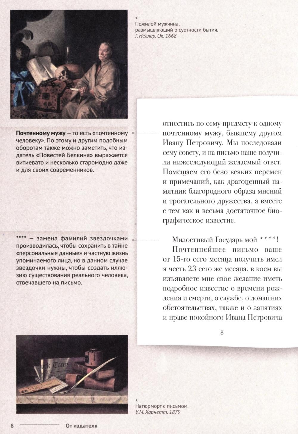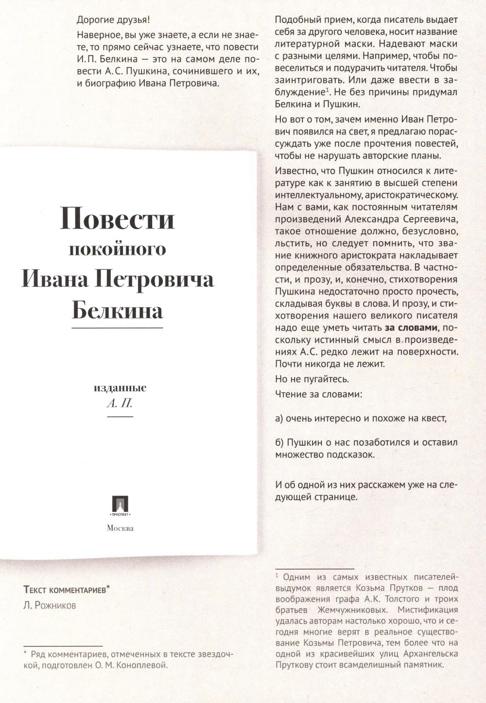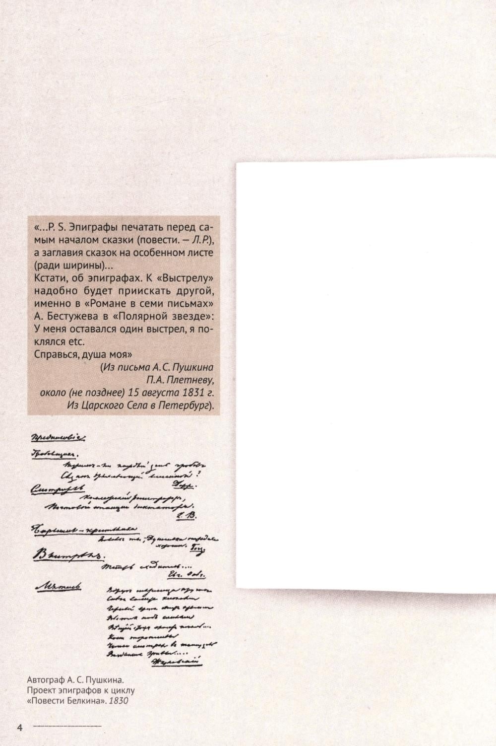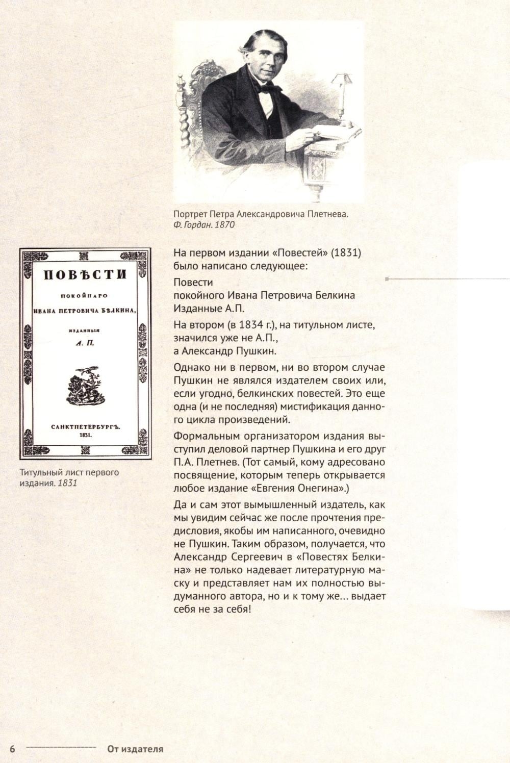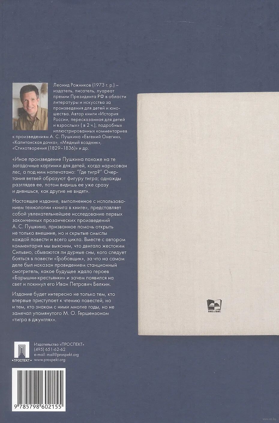 Настоящее издание, выполненное с использованием технологии «книга в книге», представляет собой увлекательнейшее исследование первых законченных прозаических произведений А. С. Пушкина, призванное помочь открыть не только внешние, но и скрытые смыслы каж дой повести и всего цикла. Вместе с автором комментария мы выясним, что двигало жестоким Сильвио, сбываются ли дурные сны, кого следует бояться в повести "Гробовщик", за что на самом деле был наказан провидением станционный смотритель, какое будущее ждало героев «Барышни-крестьянки» и зачем появился на свет и покинул его Иван Петрович Белкин.