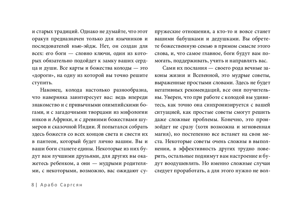 Я твердо верю, что с этим оракулом вы обретете спокойствие, вас покинет чувство одиночества и отчаяния. Вы убедитесь, что не одиноки и находитесь под надзором невидимых сил, которые всегда на вашей стороне.