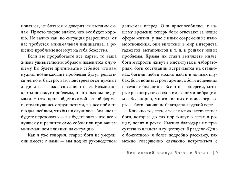 Старые боги приспособились к нашему времени: теперь они вплетены в мир интернета, гаджетов, мегаполисов и решают современные проблемы. Храмы их стали выглядеть иначе: боги мудрости живут в институтах и лабораториях, боги состязаний встречаются на стадионах, богинь любви можно найти в ночных клубах, боги войны управляют армиями. Конечно же, есть и те самые "классические" боги, которые до сих пор живут в лесах и рощах, полях и реках. Все это – энергии с разными вибрациями.
