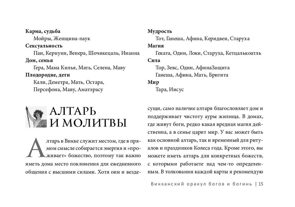 В разделе "День с божеством" я более подробно расскажу, как можно совершенно случайно встретиться с ними на улице, а в части "Алтарь и молитвы" мы поговорим о том, как установить контакт.
