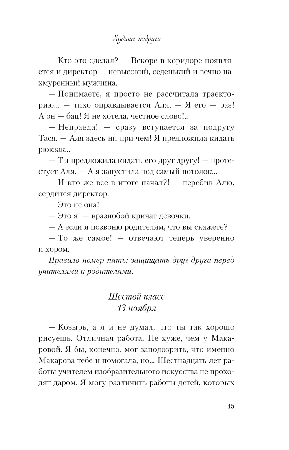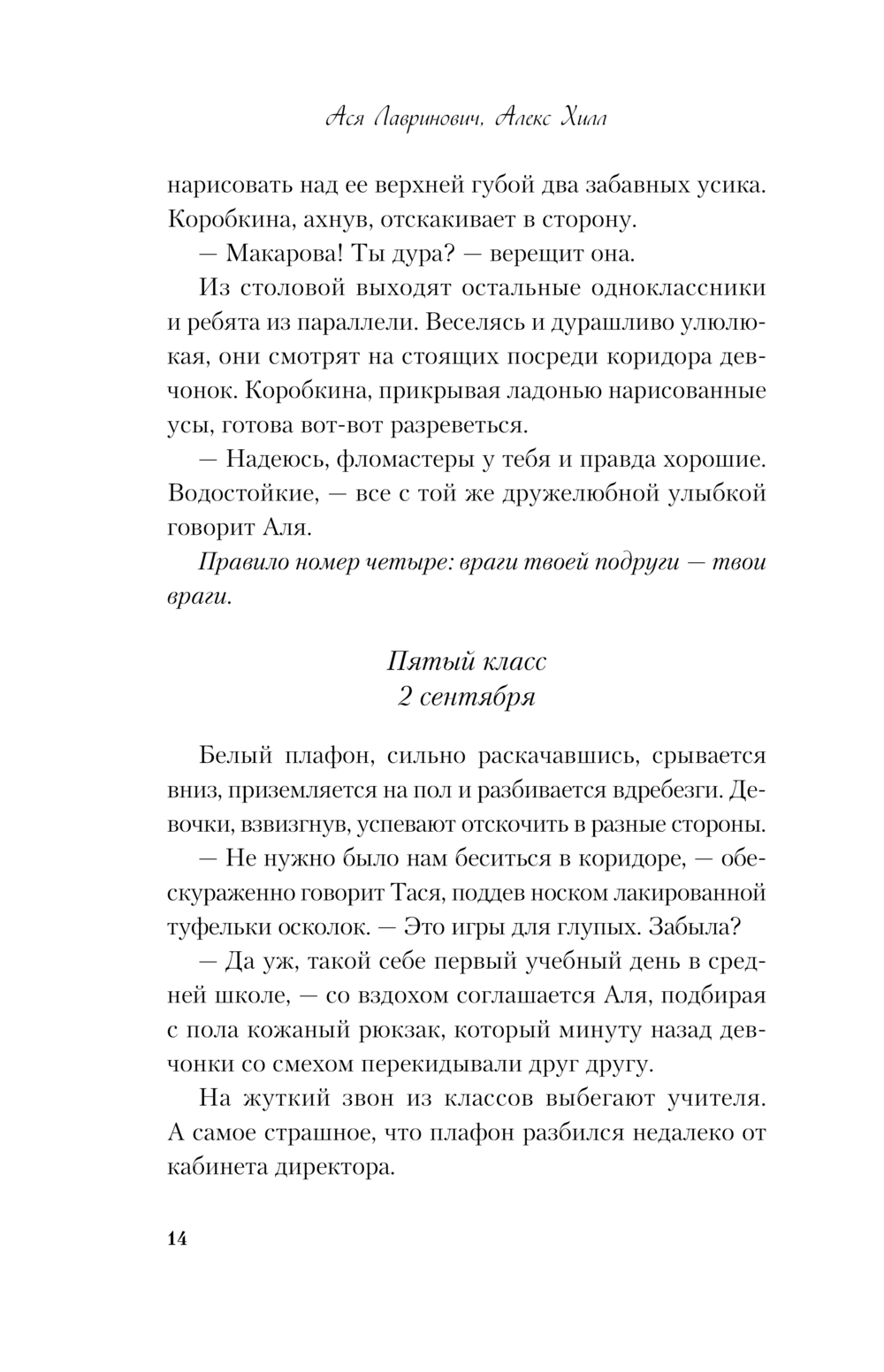 Аля Макарова и Тася Козырь дружат с первого класса. Две яркие девчонки без проблем делят между собой школьную корону и с гордостью носят ее вместе, крепко держась за руки. А список правил, составленный за годы их дружбы, хранит и оберегает девчонок от ссор и неудач.