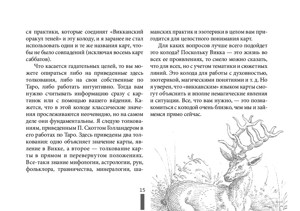 Перед вами тематическое и стилистическое продолжение бестселлера "Викканский оракул теней" от Арабо Саргсяна. В его новой колоде 22 старших аркана с оригинальными названиями и 56 младших арканов, разделенных на масти (Жезлы/Воздух, Мечи/Огонь, Кубки/Вода, Пентакли/Земля). Здесь нет традиционных пажей, рыцарей и королев. Вместо них вы встретите стихийных духов, ведьм стихий и знаменитых практиков Викки: травницу, целителя, ведьму-одиночку и других.