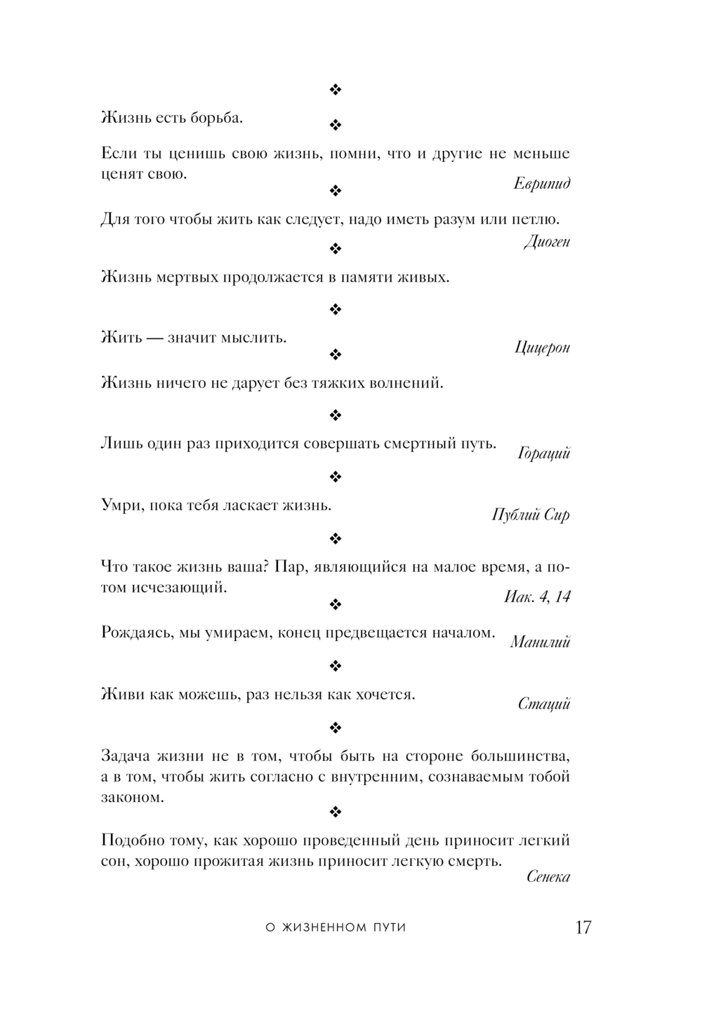 Греческие буквы альфа и омега имеют символический смысл – начало и конец. В этой книге изречения мудрецов всех времен собраны по такому же принципу – от альфы до омеги, от рождения до смерти. На каждом этапе жизненного пути человек нуждается в опытном наставнике, который подсказал бы, где кроются опасности, а где возможности, чего лучше избегать, а чему радоваться, с чем лучше смириться и в чем черпать вдохновение, что оставить в стороне и на что опереться. Мудрость веков – самый лучший указатель и советчик в тех ситуациях, когда мы оказываемся на распутье.