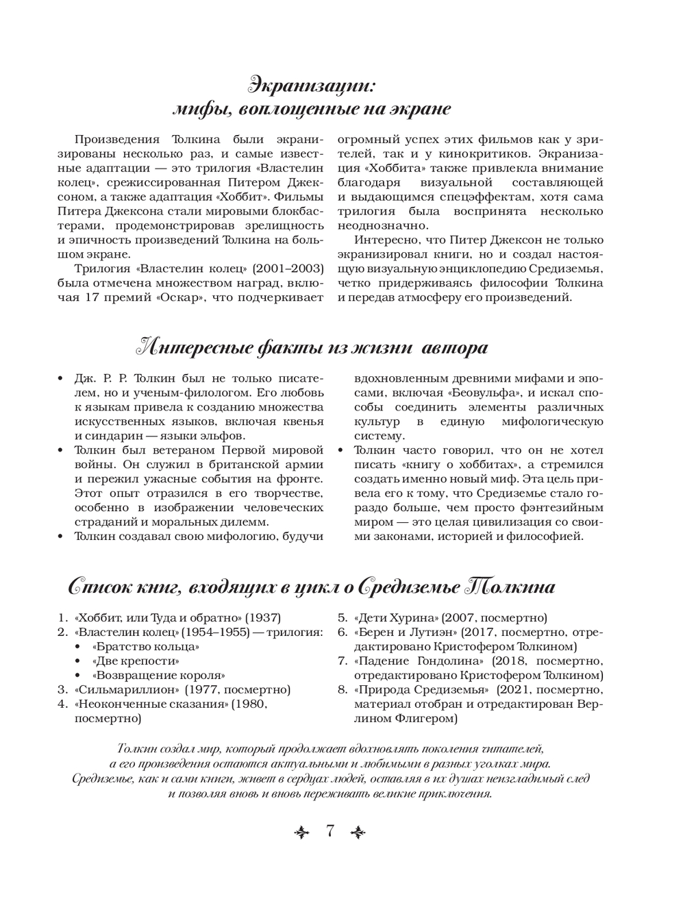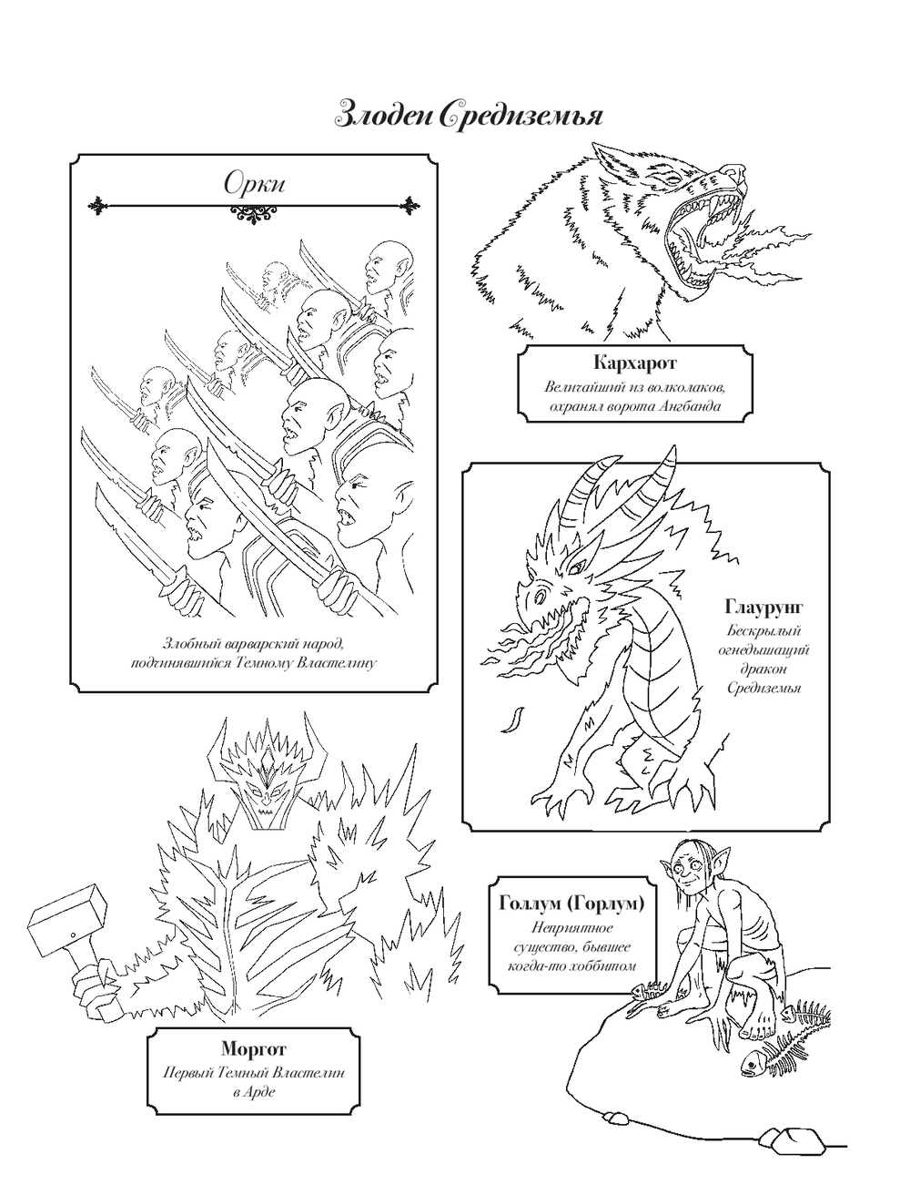 Погрузитесь в сказочный мир Средиземья, полный магии, отваги, эпических битв и незабываемых героев. Совершите невероятное путешествие по вселенной Дж. Р. Р. Толкина, населенной разнообразными существами: мудрыми эльфами, крепкими гномами, храбрыми людьми, загадочными хоббитами и ужасными орками.На страницах раскраски героев ждут схватки с орками и троллями, испытания дружбы и верности, любовь и разочарование, борьба за свободу, надежду и свет против тьмы.