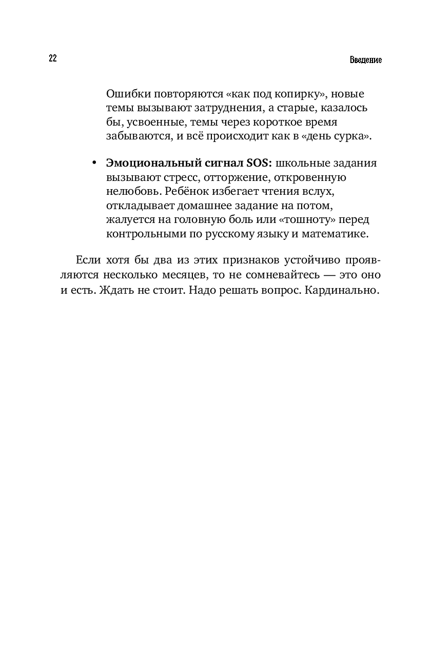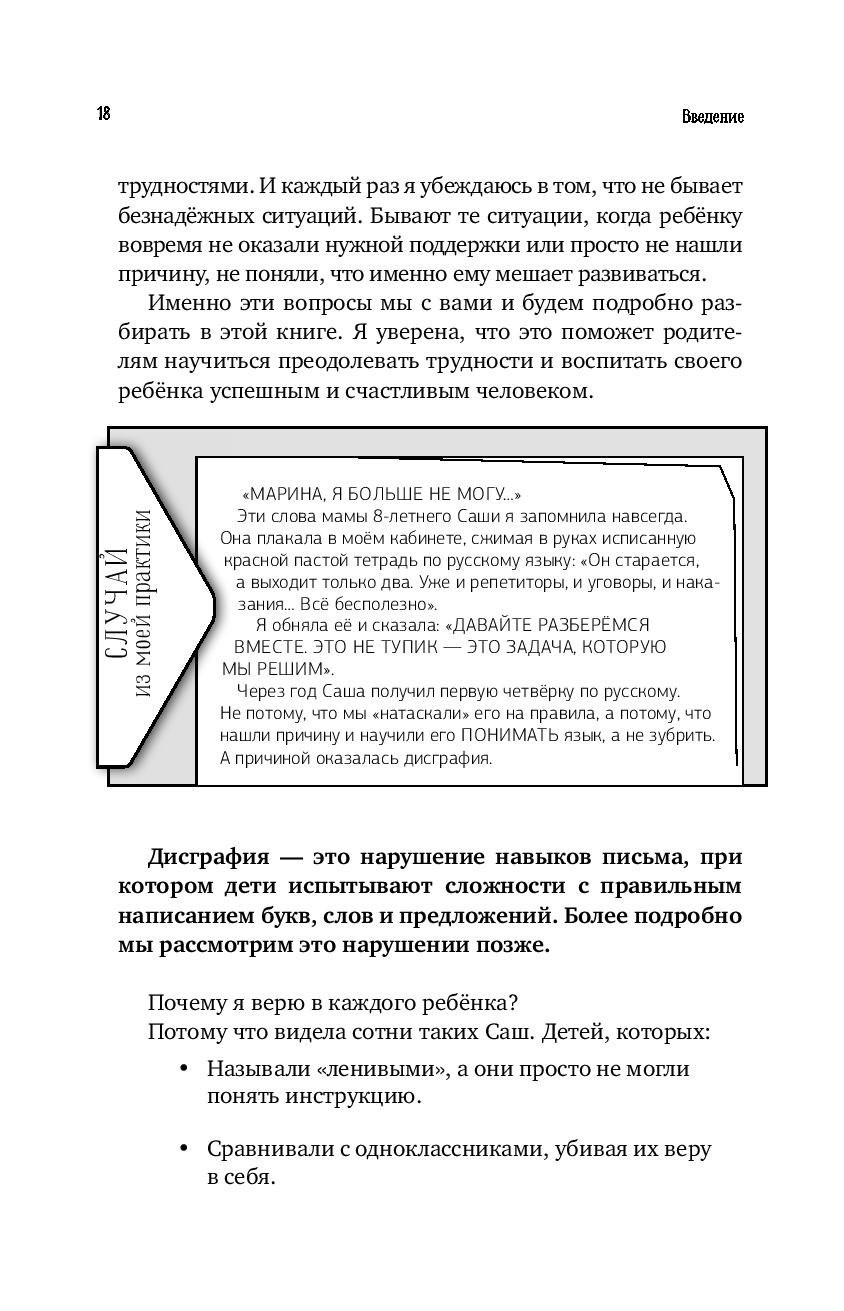 Эта книга – подробный путеводитель не только для начинающих специалистов, но и для родителей, чьи дети сталкиваются с трудностями чтения, письма или счёта: дислексией, дисграфией, дискалькулией, и, как следствие, – со школьной неуспеваемостью.