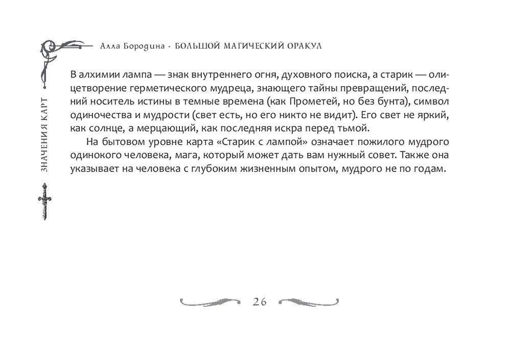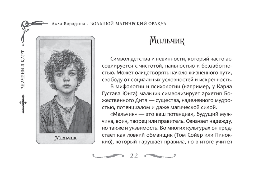 История этой колоды началась давно, в детстве автора – с уютной комнаты, где пахло травами и лежали старые книги, а на столе всегда были разложены карты. Старая гадалка-соседка стала первым наставником и подарила ощущение, что карты могут быть настоящим ключом к пониманию жизни. Позднее у автора возникла мысль создать свой собственный оракул – переработать старую систему, наполнить ее личным опытом, знаниями и свежим взглядом. Так родился "Большой магический оракул", который расширился до 78 карт и стал более точным и глубоким.