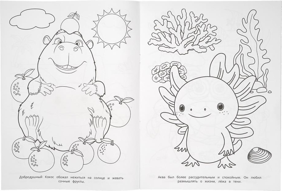 Эта занимательная раскраска про забавных и милых животных не только скрасит досуг ребёнка, но и поможет потренировать руку к письму. Внутри детей ожидают интересные картинки с чётким контуром и сюжетные тексты к ним. Благодаря удобному формату раскраску можно взять с собой в дорогу.