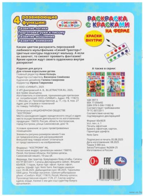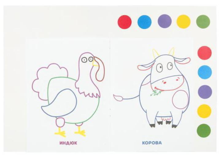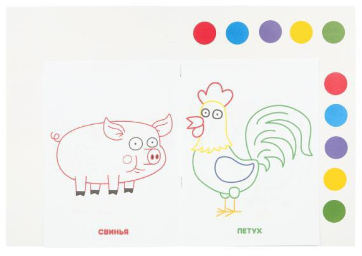 Теперь не нужно покупать краски и фломастеры – на последней странице этой замечательной раскраски есть настоящие акварельные краски. Это особенно удобно для спонтанных занятий творчеством: остаётся только коснуться красок мокрой кисточкой и вдохнуть жизнь в иллюстрации, цветной контур которых служит подсказкой, какой цвет выбрать. Стоит отметить, что раскраски с красками особенно полезны для детей младшего возраста, когда они только начинают знакомиться с художественными материалами и нуждаются в простом и понятном формате творчества.