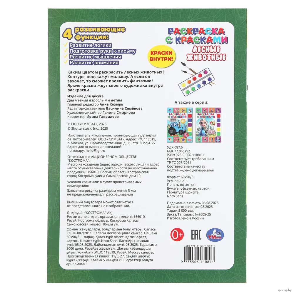 Теперь не нужно покупать краски и фломастеры – на последней странице этой замечательной раскраски есть настоящие акварельные краски. Это особенно удобно для спонтанных занятий творчеством: остаётся только коснуться красок мокрой кисточкой и вдохнуть жизнь в иллюстрации, цветной контур которых служит подсказкой, какой цвет выбрать. Стоит отметить, что раскраски с красками особенно полезны для детей младшего возраста, когда они только начинают знакомиться с художественными материалами и нуждаются в простом и понятном формате творчества.