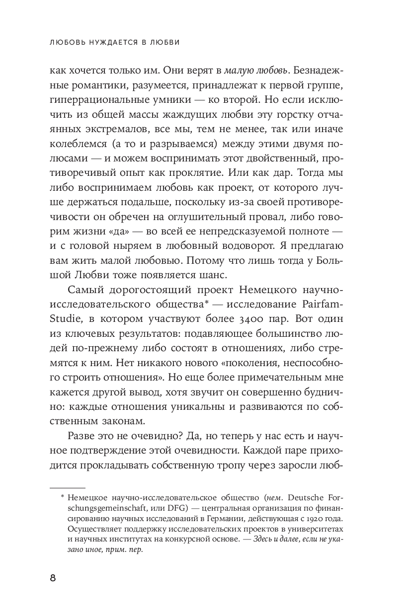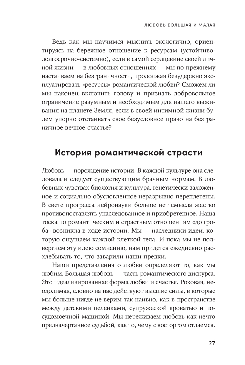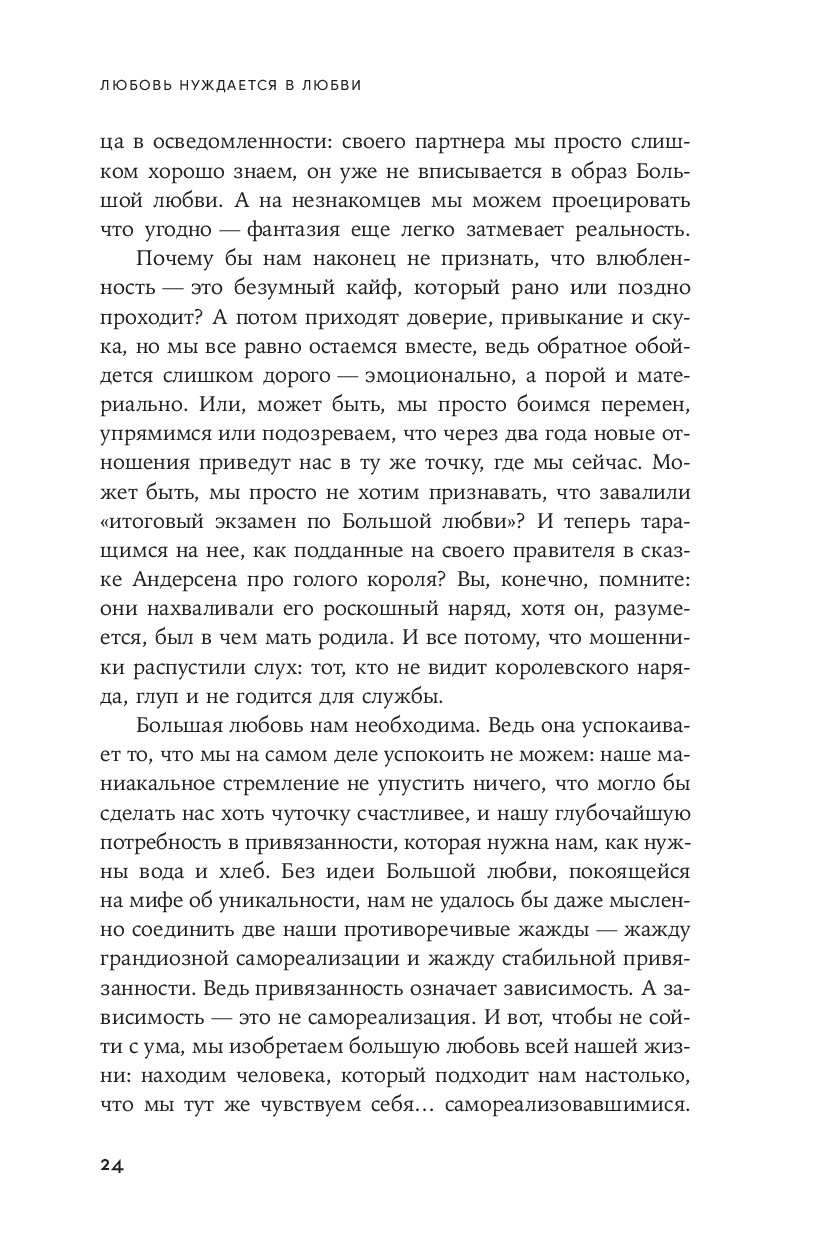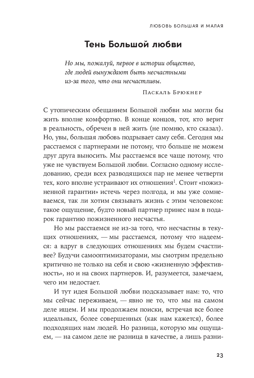 Квалифицированный психолог и семейный психотерапевт Оскар Хольцберг предлагает нам не жить ожиданием мифической Большой любви, вымещая неудовлетворенность от ее отсутствия на наших "недостаточно идеальных" партнерах, а сосредоточиться на доступной уже сейчас реальности.