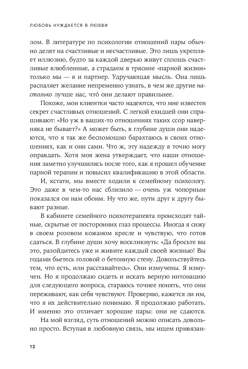 Эта книга станет для вас пособием по выстраиванию крепких и долгосрочных отношений: в ней есть и действенные советы автора, и многочисленные примеры из практики, и разбор досадных ошибок. Вы научитесь четко понимать, чего именно хотите от вашего партнера, что можете дать ему сами и какого развития стоит ожидать от ваших отношений. Постепенно вы начнете больше открываться любимому человеку и доверять ему, научитесь правильно общаться и перестанете бояться брать на себя ответственность – и всё это обязательно укрепит ваши отношения, сделав их настоящими и счастливыми.