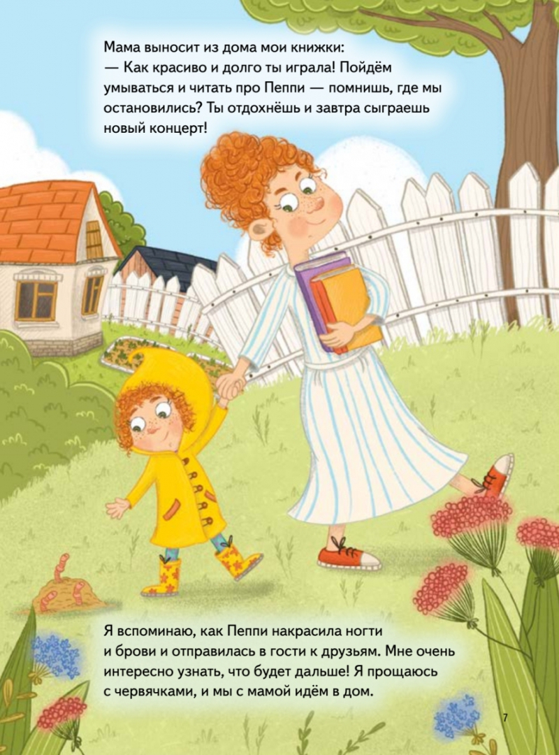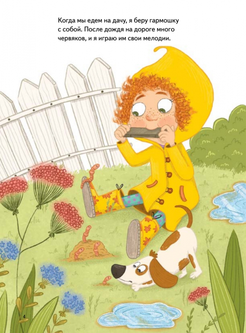 Алиса любит играть на губной гармошке, гулять с собакой Полькой и читать истории про Пеппи Длинныйчулок. Иногда Алиса сердится и спорит. Когда не хочется ложиться спать и слушать бабушку. Когда папа зовет чистить зубы, когда в садике не нравится суп и неохота уходить с прогулки. Когда бесконечно каталась бы на игрушечном мотоцикле, но пора домой.