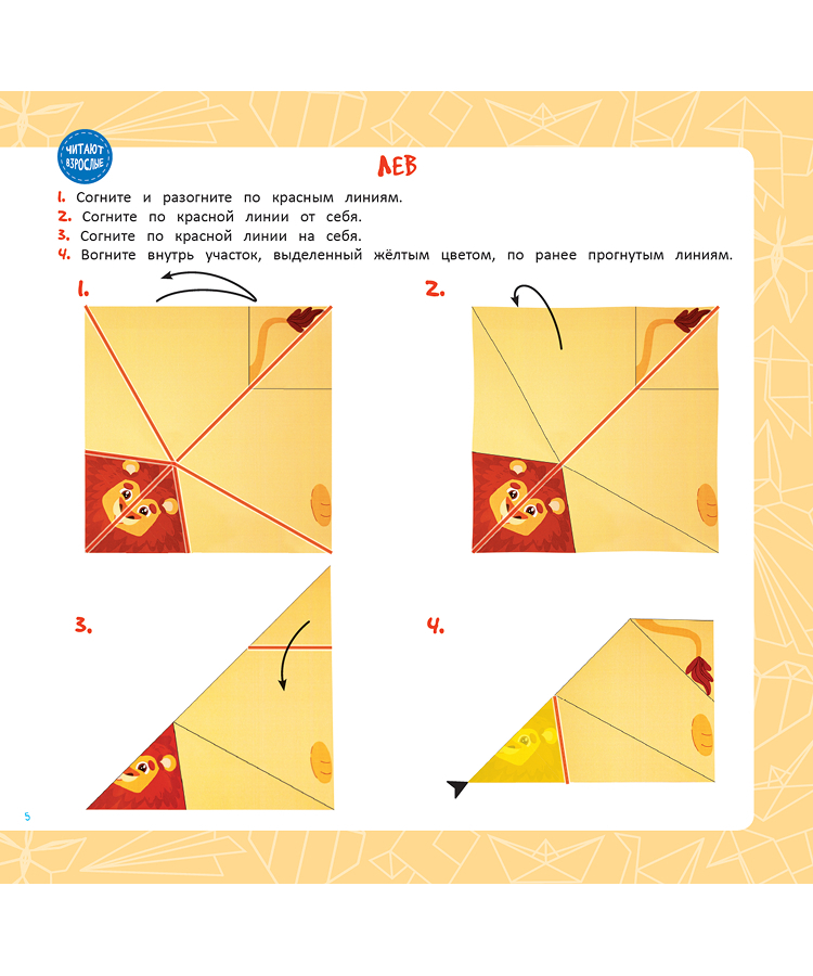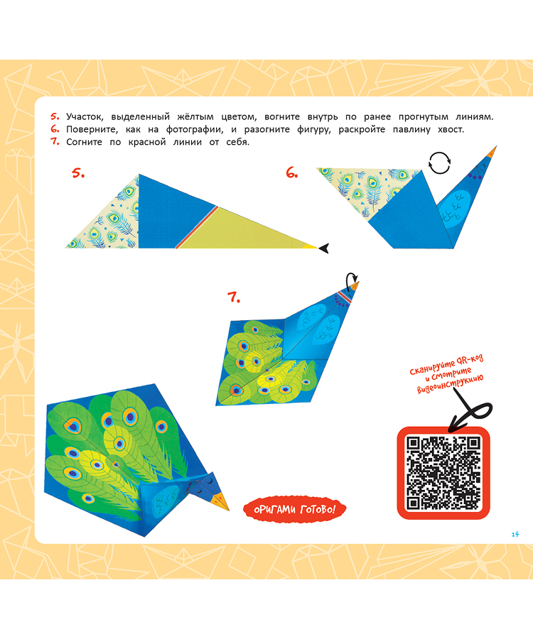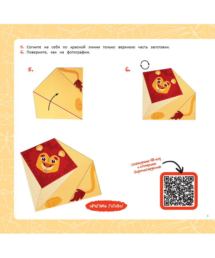 Книги серии "Оригами" предлагают все необходимое для увлекательного занятия японским искусством складывания фигурок из бумаги: цветные заготовки, понятные схемы и фотографии, подробные инструкции и даже ссылки по QR-коду на видеоинструкции. Оригами для ребенка – не просто интересное творческое развлечение, а и крайне полезное обучающее и развивающее занятие.