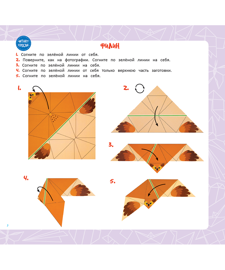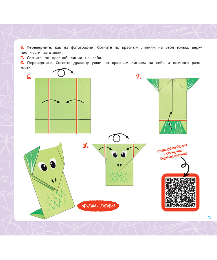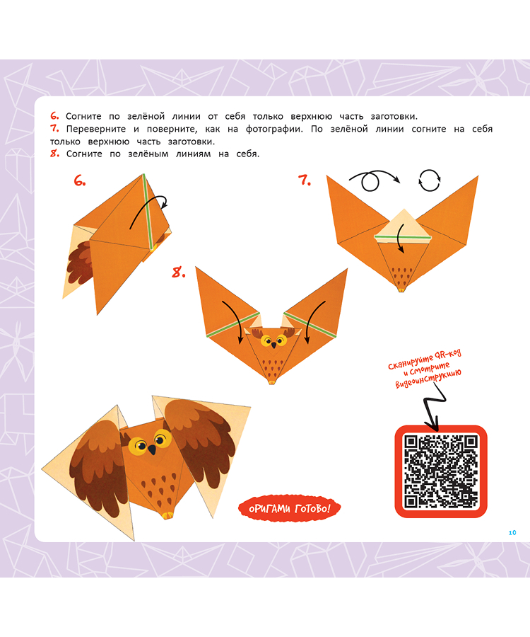 Книги серии "Оригами" предлагают все необходимое для увлекательного занятия японским искусством складывания фигурок из бумаги: цветные заготовки, понятные схемы и фотографии, подробные инструкции и даже ссылки по QR-коду на видеоинструкции. Оригами для ребенка – не просто интересное творческое развлечение, а и крайне полезное обучающее и развивающее занятие.