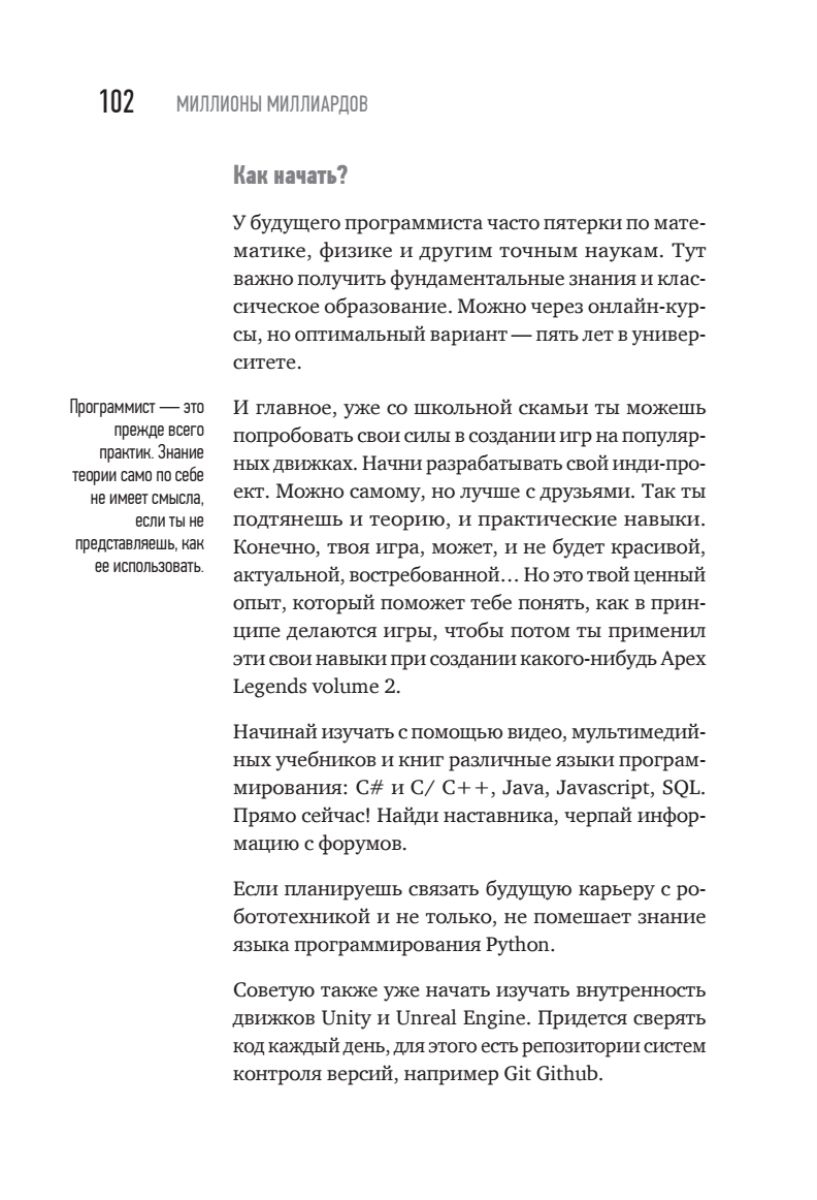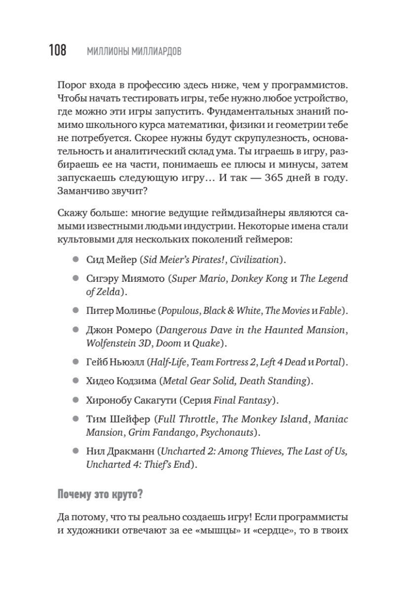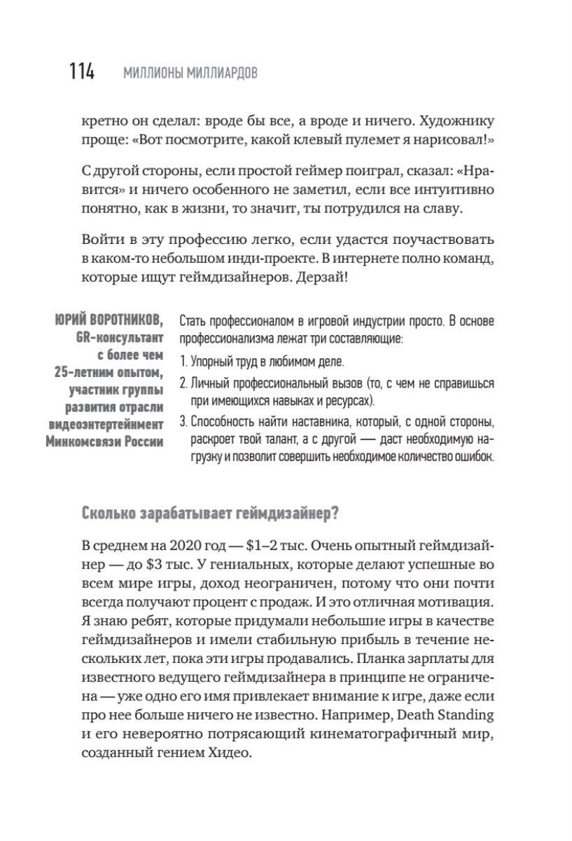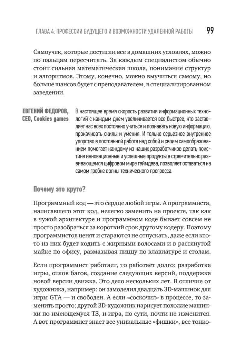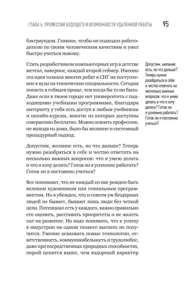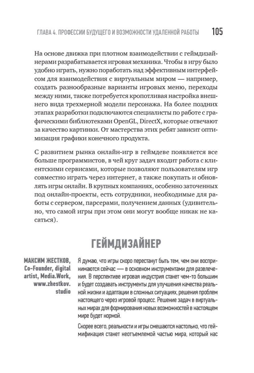 В этой книге вы сможете найти актуальную и практическую информацию о том, как попасть в игровую индустрию, как выбрать профессию по душе и как начать зарабатывать первые деньги, а также о том, как попасть на игровой рынок США, работая удаленно из Москвы, Казани, Минска или Ульяновска.