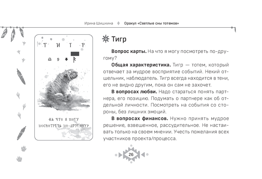 В текстовой инструкции Ирина Шишкина предлагает систему с опорой на психологию, менеджмент, эзотерику и философию и приводит разностороннюю трактовку тотемов. Это делает колоду полезной в широком применении для психологических и магических задач.