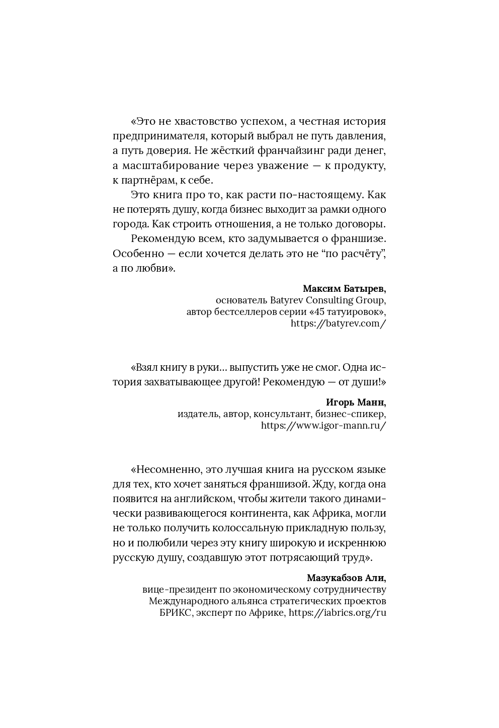 Книга, после которой масштабирование перестает быть лотереей. В книге – двенадцать содержательных интервью с предпринимателями, которые прошли путь от одной точки до федеральной сети и сохранили качество, людей и смысл. Они показывают, как на самом деле вырастить сеть: кого брать в партнеры и как их готовить, какие стандарты держат дистанцию, как устроить финмодель, чтобы рос не только оборот, но и маржа, и как контролировать сотни точек без поломки сервиса.
