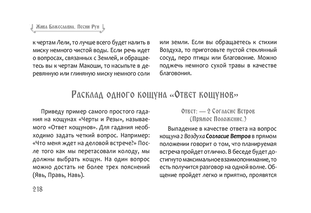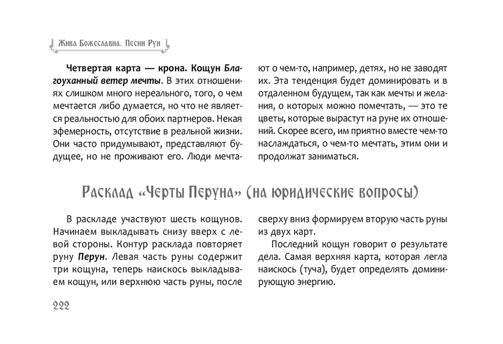 Перед вами уникальный славянский оракул, созданный талантливой художницей и волхвой Живой Божеславной. Каждая из 78 рунических карт (кощунов) представляет собой авторское прочтение календарных черт и рез, особых знаков древних славян. С их помощью делали записи о временах созревания и сбора урожая, месяцах года, праздниках. Также их применяли в ритуально-магических целях – чтобы узнавать будущее и обращаться за помощью к богам, почитаемым во времена дохристианской Руси: Макошь, Перун, Велес и др. Специально для работы с картами автор написала книгу "Песни рун". В ней раскрыты все секреты колоды, представлены песни-заклинания для каждого кощуна, описаны способы гадания.