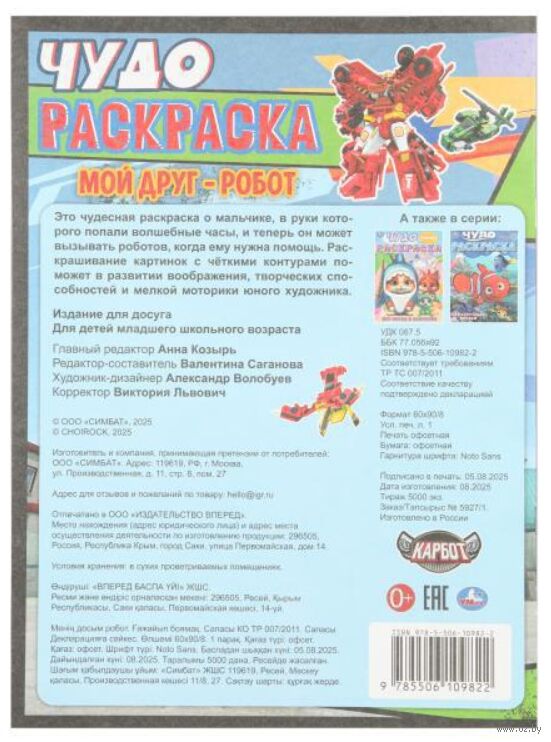 Эта увлекательная раскраска про удивительные говорящие машинки, трансформирующиеся в роботов, непременно понравится вашему ребёнку. Раскрашивая героев любимого мультфильма, маленький художник не только отлично проведёт время, но и разовьёт воображение, потренирует внимание, научится аккуратности и, конечно же, потренирует руку к письму. Благодаря удобному формату раскраску можно взять с собой в путешествие.