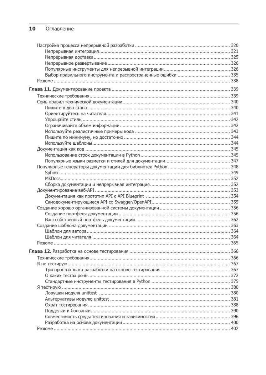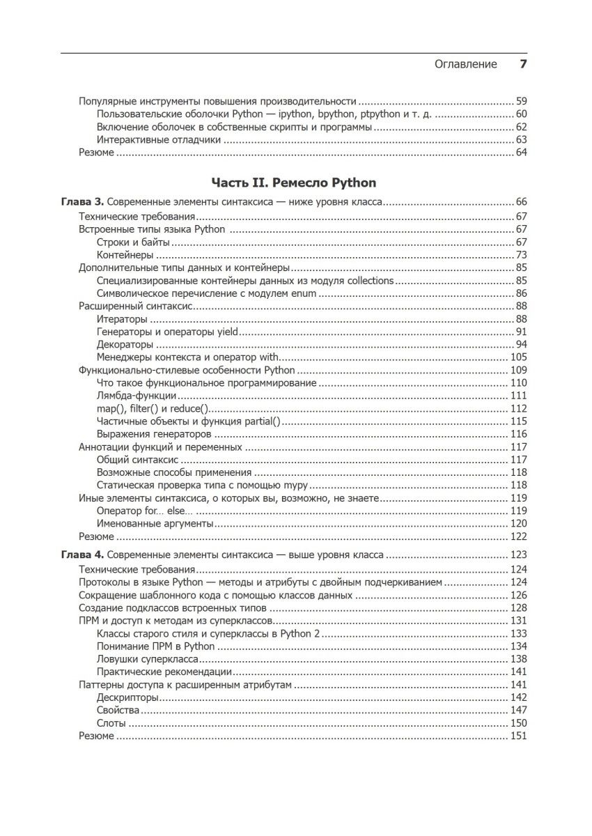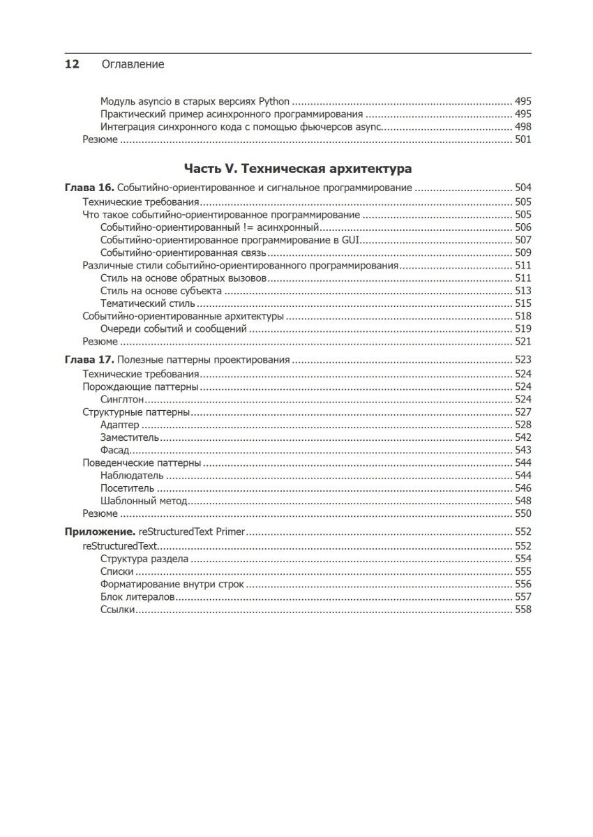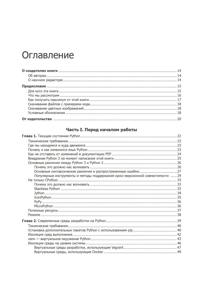 Авторы начинают с рассказа о новых возможностях Python 3.7 и продвинутых аспектах синтаксиса Python. Продолжают советами по реализации популярных парадигм, в том числе объектно-ориентированного, функционального и событийно-ориентированного программирования.