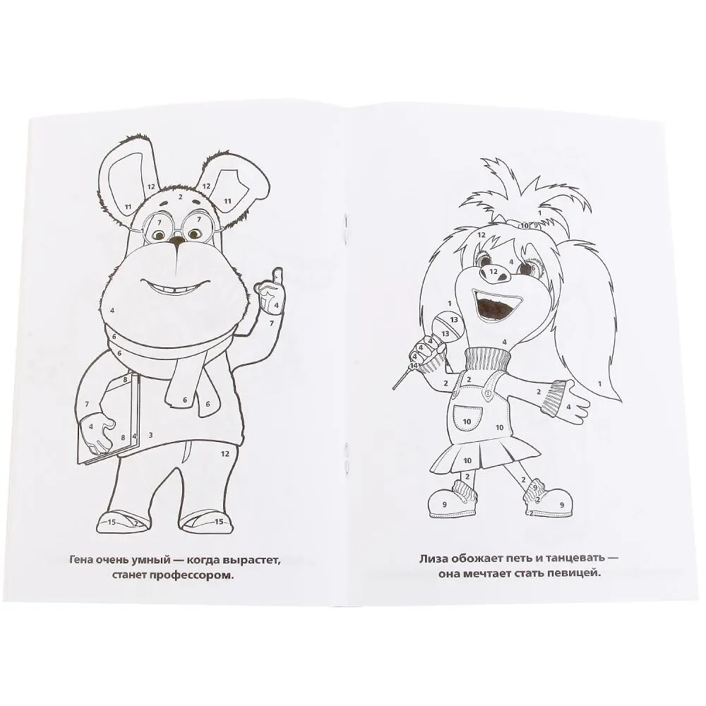 Малыш будет рад встрече с героями мультфильма на страницах раскраски. Пользуясь цветовыми подсказками, он правильно раскрасит части картинок. Благодаря компактным размерам раскраску удобно брать с собой в дорогу.