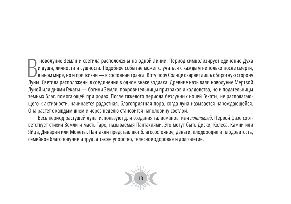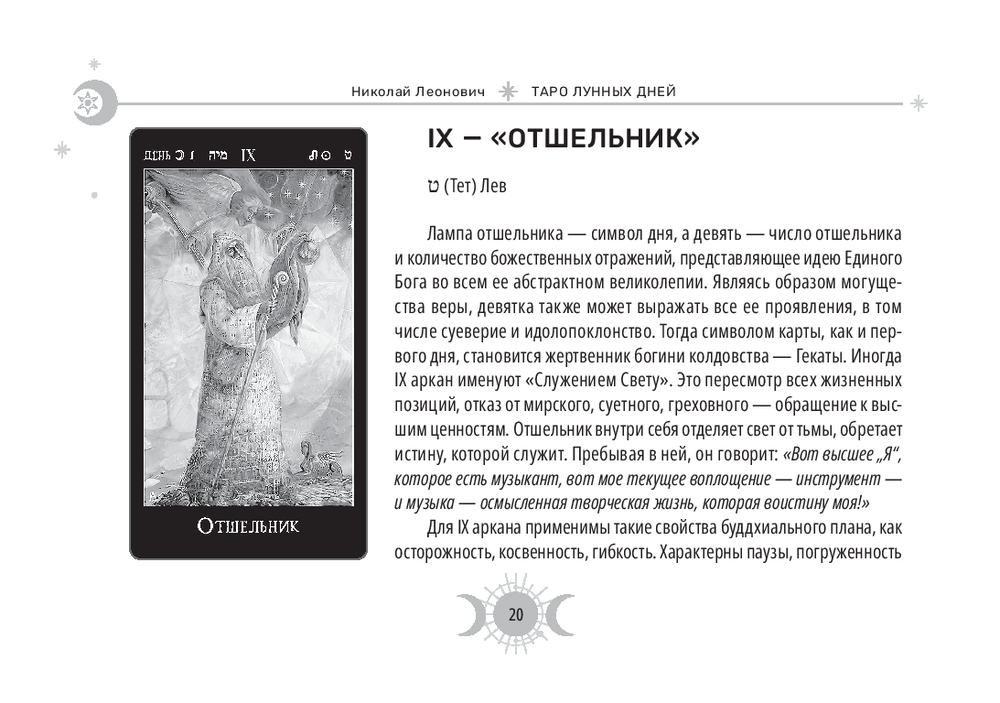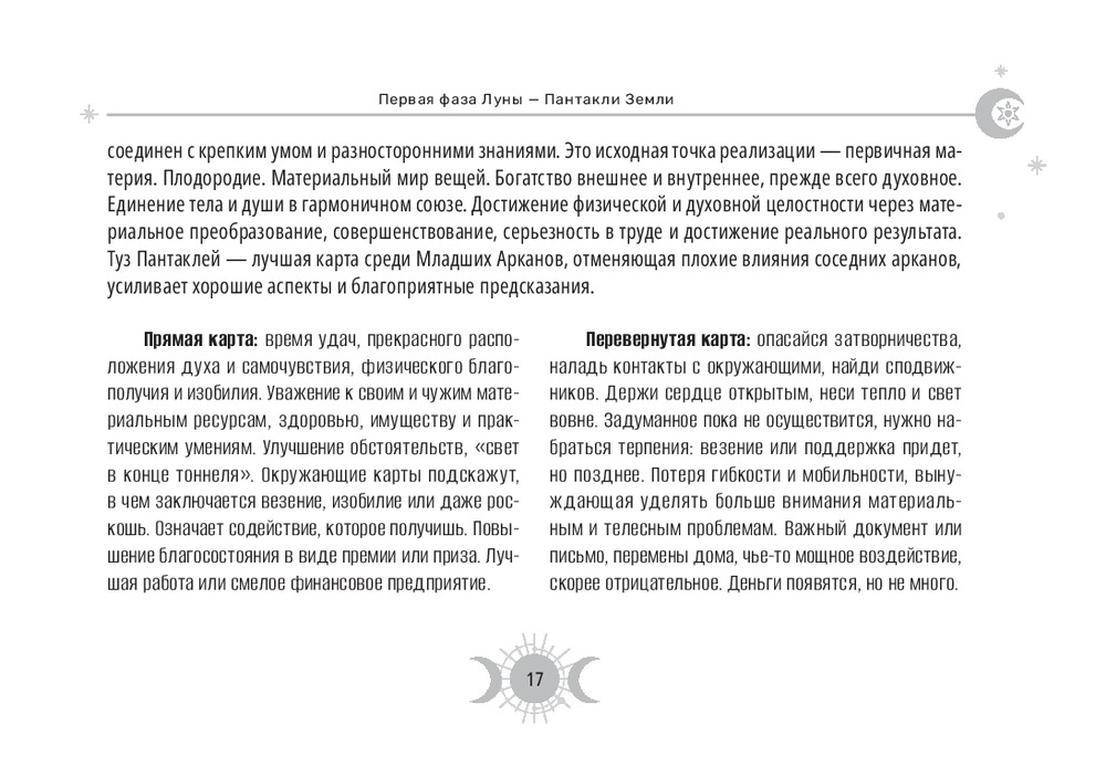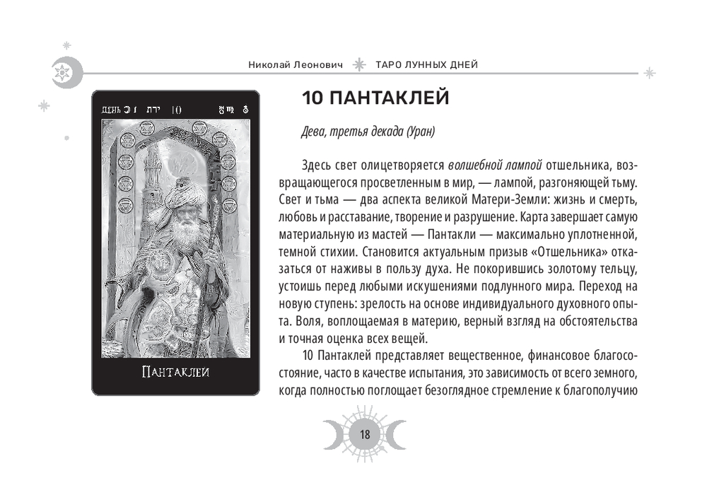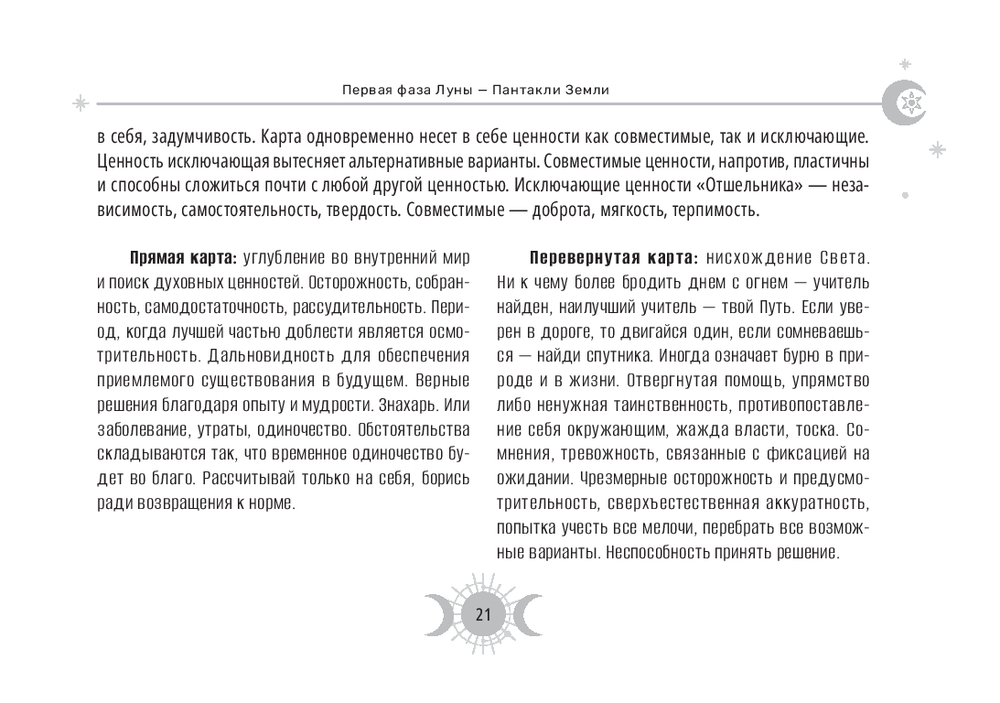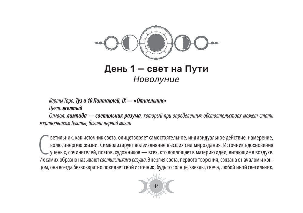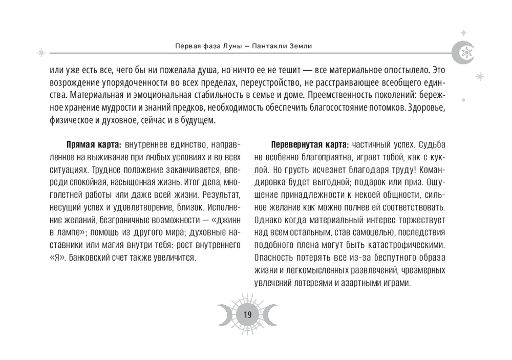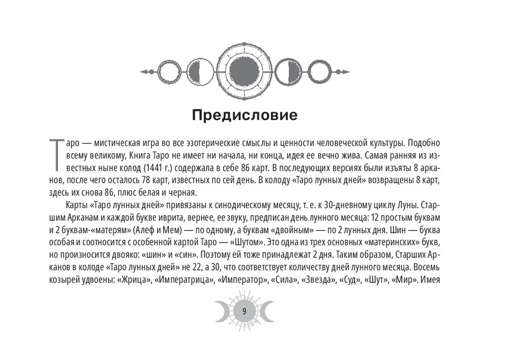 Эта колода – настоящий магический инструмент. Ее карты привязаны к 30-дневному циклу Луны и содержат дополнительные 8 арканов, которые были когда-то в самой ранней версии Таро (всего 86 арканов), плюс белая и черная карты.