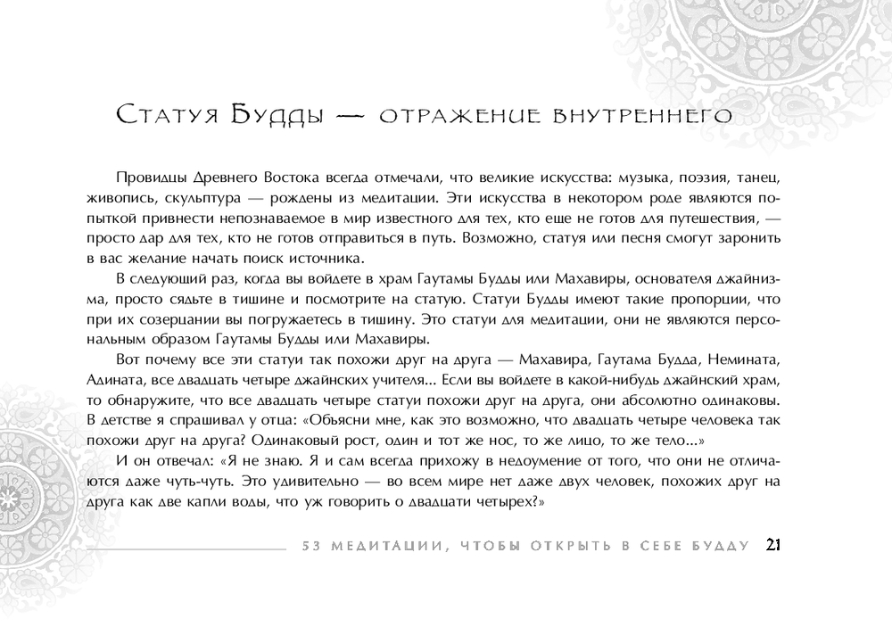 "Узнавая Будду" – это философская игра и идеальный подарок для каждого искателя мудрости. Это также прекрасный творческий инструмент для ежедневных медитаций, познания себя и трансформации личности. Эти карты помогут вам более внимательно и осознанно относиться к уму, телу и чувствам каждый день. Это не гадальные карты – они не предназначены ни для предсказания будущего, ни даже для интерпретации того, что происходит здесь и сейчас. Скорее они являются напоминанием о том, что каждый из нас несет внутри себя потенциал пробуждения, возможность стать буддой, и это то, что придает смысл нашей жизни.