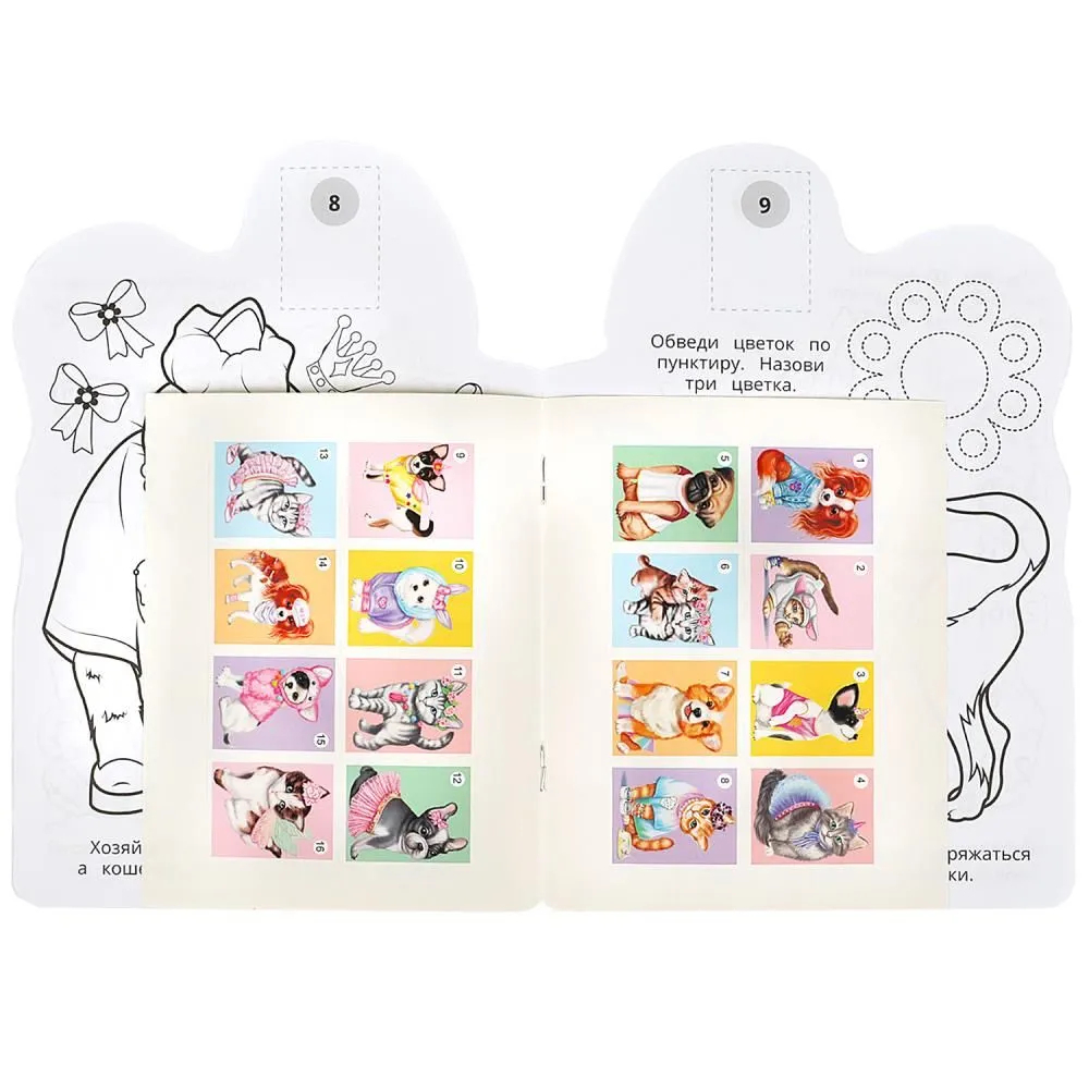 Ребёнок будет рад повстречаться на страницах этой занимательной раскраски с очаровательными питомцами-модниками. В ней он найдёт красивые картинки с чёткими контурами, интересные задания к ним и яркие стикеры, которые можно использовать в качестве образца для раскрашивания. Благодаря компактному размеру раскраску удобно брать с собой в дорогу.