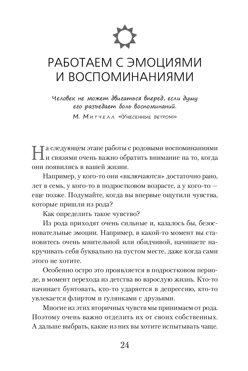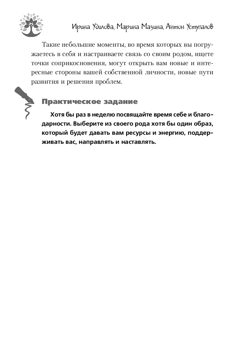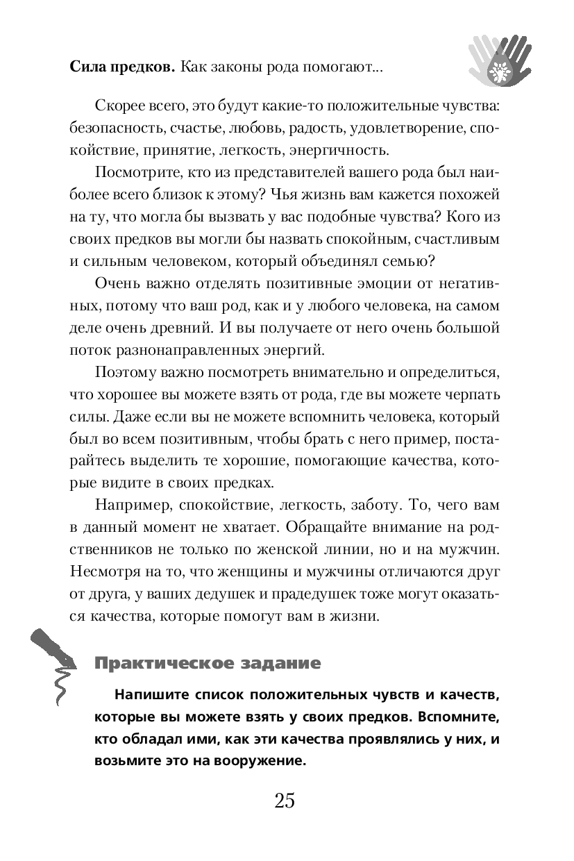 Кроме того, вы освоите специальные упражнения, помогающие избавляться от "родовых проблем", и убедитесь, что многие ваши сегодняшние трудности и неприятности – это отголоски жизни ваших предков и что они легко решаемы.