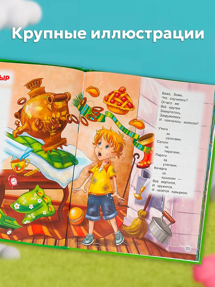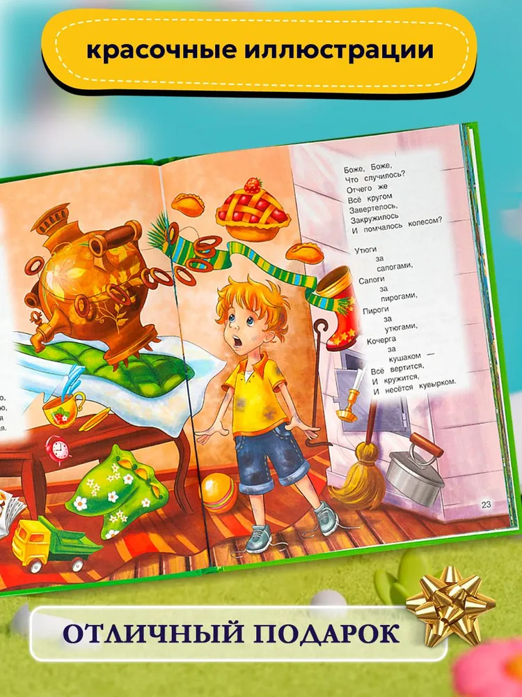 Познакомить ребенка с первыми стихами – отличная задача для этой книги для детей. Книжка для малышей содержит в себе шесть увлекательных историй: Айболит, Мойдодыр, Телефон, Муха-Цокотуха, Тараканище и Бармалей. Уникальность каждого из них способна развлечь ребенка и при этом открывать полезные жизненные уроки.