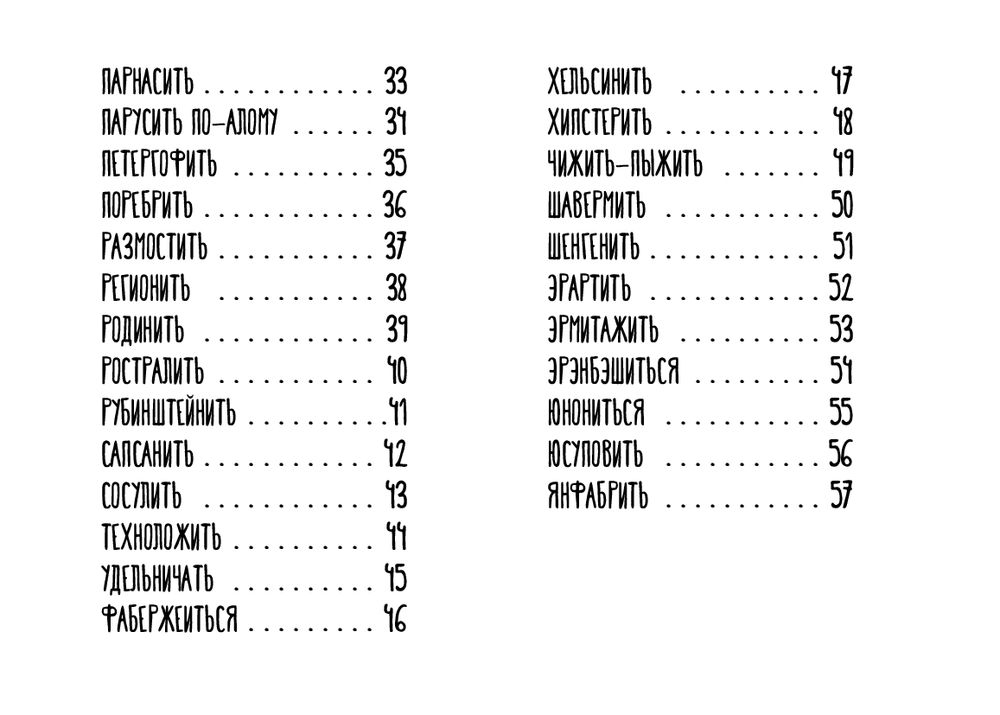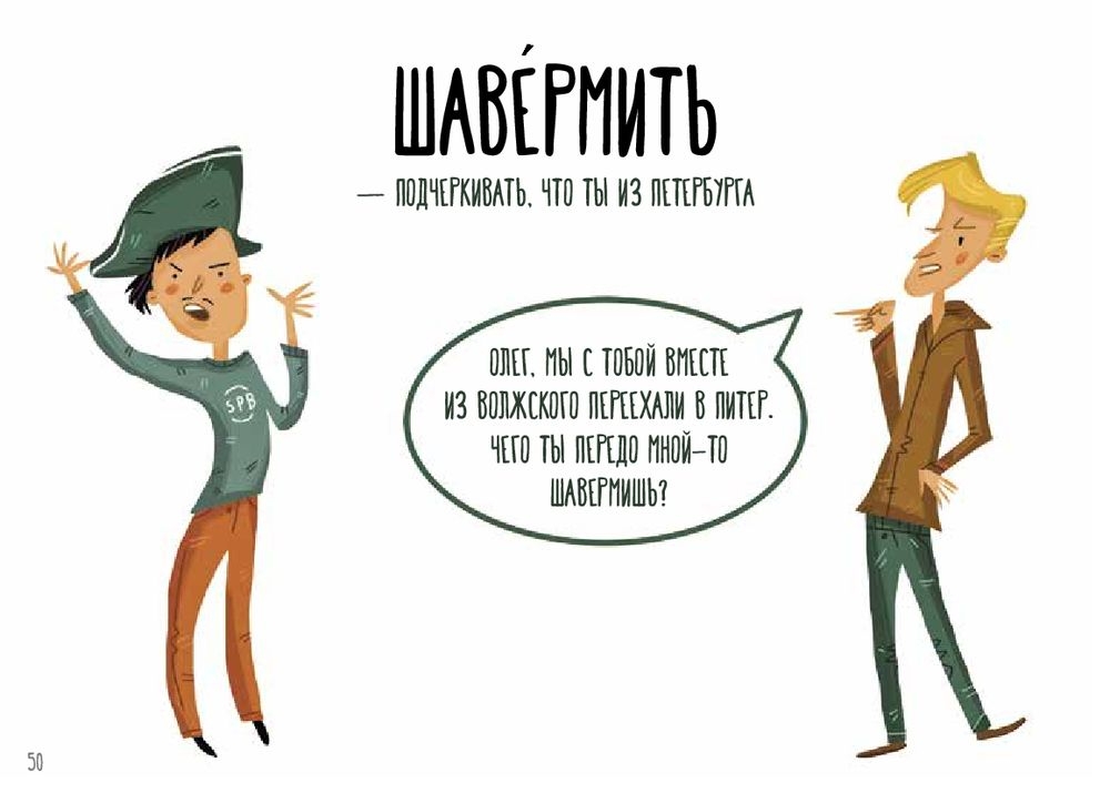 Эта книга родилась из шуточного поста на "Фейсбуке". Автор придумал слова, которые поймет каждый Петербуржец: "рубинштейнить", "шавермить", "эрмитажить". Идея понравилась интернет-сообществу. Пользователи писали свои варианты слов в комментариях к посту. Управлять этим вниманием начали специалисты интернет-агентства "Molinos". Сотни публикаций подстегнули нас выпустить эту книгу.