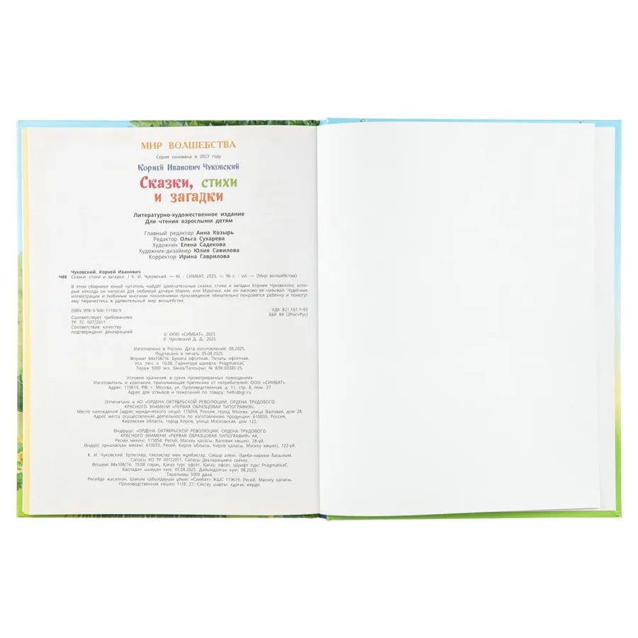 В этом сборнике юный читатель найдёт замечательные сказки, стихи и загадки Корнея Чуковского, которые некогда он написал для любимой дочери Марии, или Мурочки, как он ласково её называл. Чудесные иллюстрации и любимые многими поколениями произведения обязательно понравятся ребёнку и помогут ему перенестись в удивительный мир волшебства.