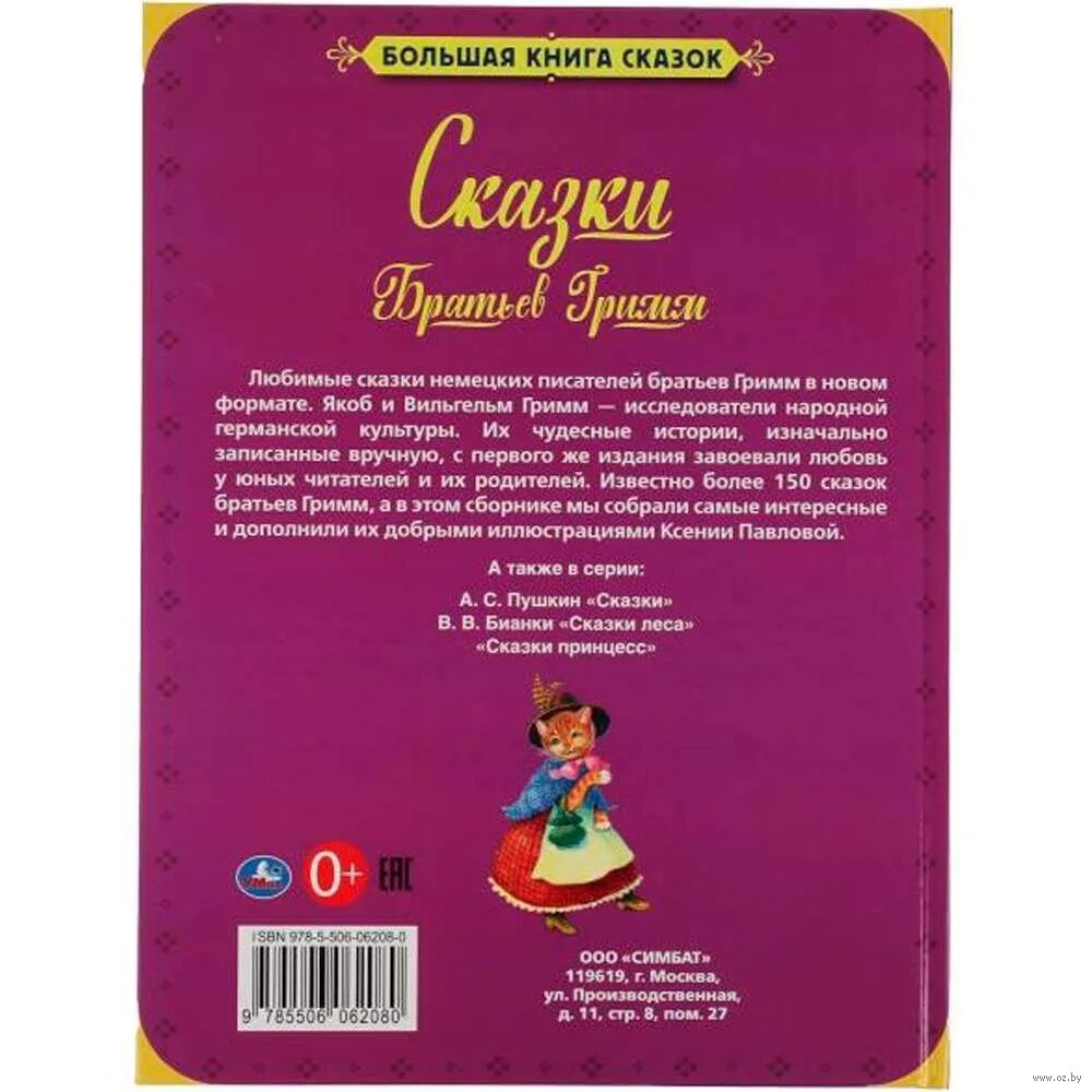 В сборник вошли известные и увлекательные сказки братьев Гримм. Такое издание станет прекрасным подарком и украшением домашней библиотеки. Дети любят сказки, ведь в них добро всегда побеждает зло, а истории всегда хорошо заканчиваются. Ваш малыш вместе со сказочными героями перенесется в волшебный мир сказок. Сказки – это и уроки доброты, милосердия, справедливости. Сказки учат детей проявлять житейскую мудрость, отличать добро от зла и помогут формировать другие положительные качества. Читать книги детям полезно с самого раннего возраста. Это стимулирует их воображение, позволяет успокоить и разнообразить досуг.