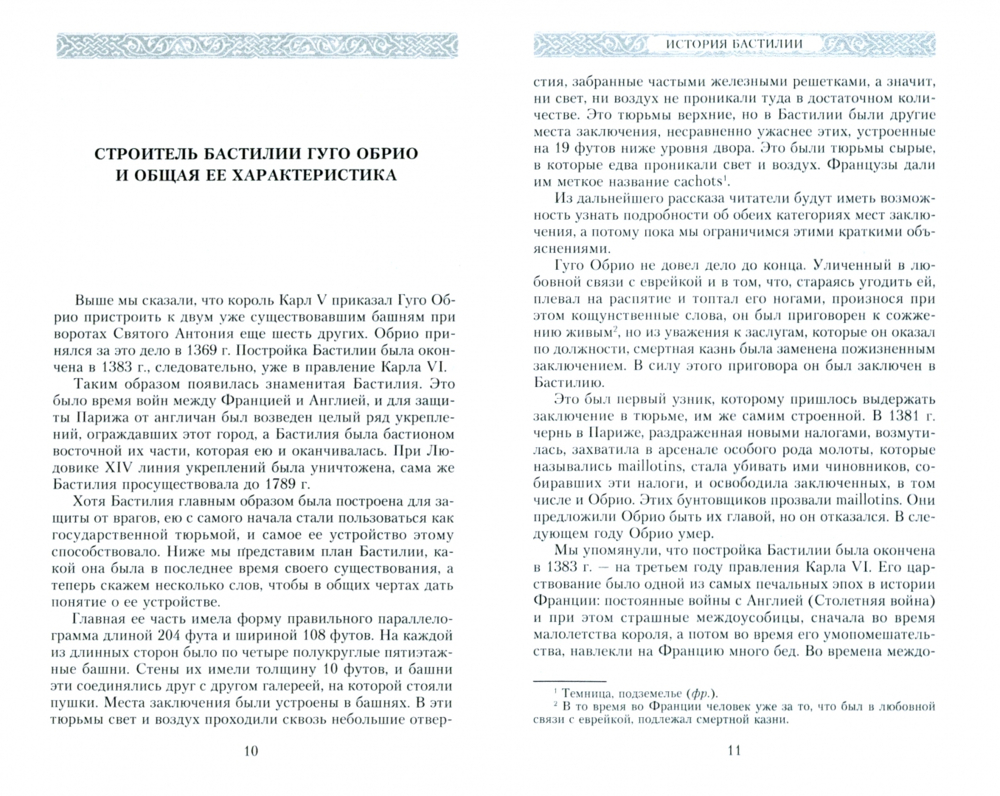Действительный статский советник, историк, специалист по Франции и прекрасный рассказчик, С.Д. Ахшарумов представил историю Бастилии с самого начала ее существования. Историк подробно описал особенности ее устройства с представлением детального плана крепости, существовавшие в ней порядки и то, как менялись условия содержания узников, а также кто, как и за что был брошен в ее темницы. Выбирая наиболее яркие события, характеризующие разные эпохи, историк рассказал об интригах и коварстве монархов и подданных короны, о храбрости и трусости, о подлости и благородстве. Более четырех столетий просуществовала ненавистная французам крепость и лишь в 1789 г. была уничтожена мятежными парижанами.