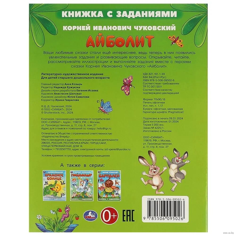 Замечательная сказка в стихах Корнея Чуковского – одна из самых известных произведений автора. Малыш с удовольствием будет читать эту увлекательную историю вместе с родителями, рассматривать яркие картинки и выполнять развивающие задания. Удобный формат позволяет взять книгу с собой в путешествие.