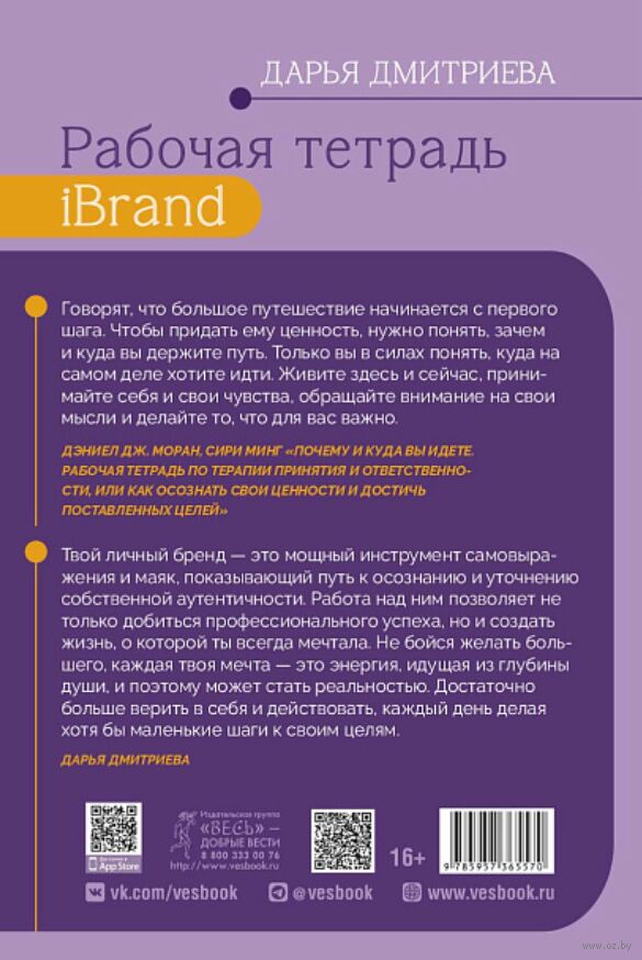 Сегодня успешность любого бизнеса зависит не только от качества продукта или услуги, но и от способности создать сильный личный бренд. Дарья Дмитриева призывает взглянуть на это шире – не только как на элемент бизнес-стратегии и финансовый актив, но и как на мощное средство самовыражения. Книга адресована, прежде всего, девушкам и женщинам, стремящимся проявить свою уникальность. Разрабатывая личный бренд, человек достигает профессиональных высот и одновременно выражает внутренние стремления и энергию, которые воплотят в реальность жизнь мечты. Важно лишь доверять себе и предпринимать конкретные шаги ежедневно, даже если они кажутся незначительными.