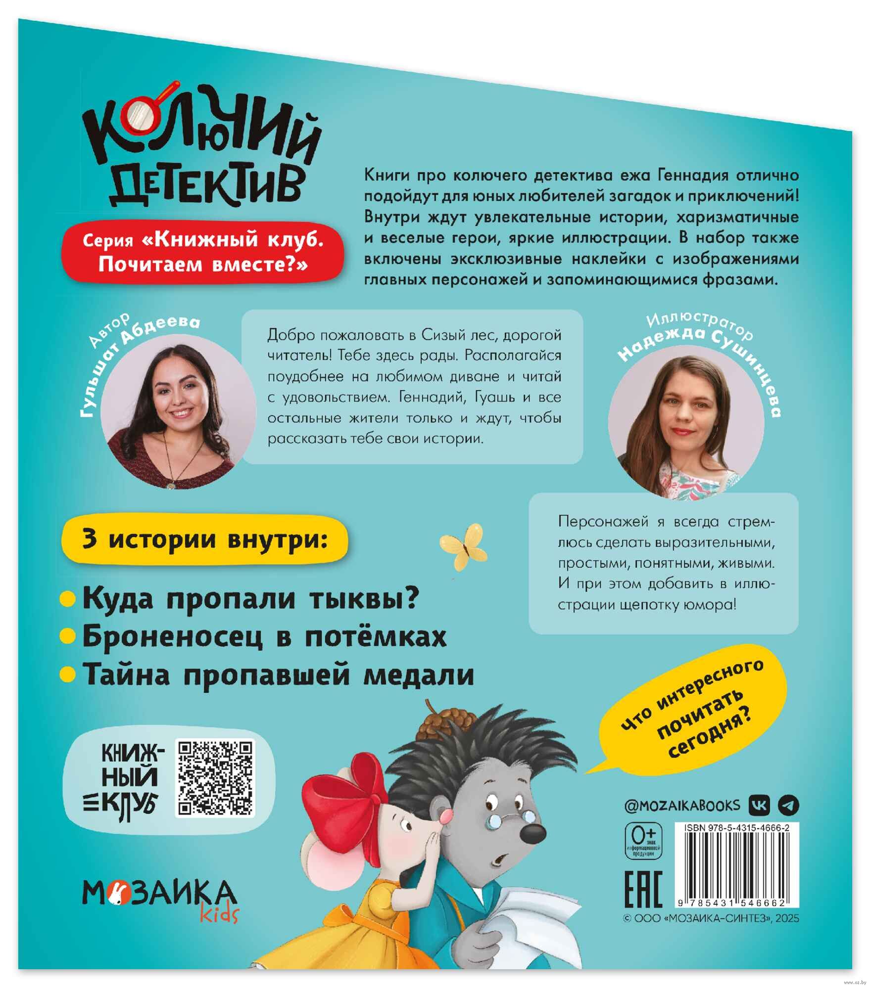 Книги про колючего детектива ежа Геннадия отлично подойдут для юных любителей загадок и приключений! Внутри комплекта ждут три увлекательные истории с харизматичными и веселыми героями, яркими иллюстрациями. В набор также включены эксклюзивные наклейки с изображениями главных персонажей и запоминающиеся фразы.
