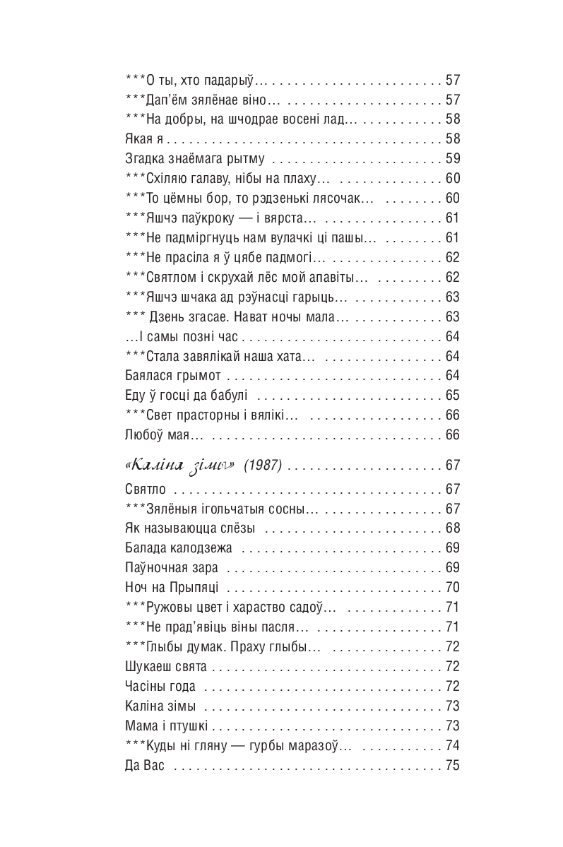 Тонка адчуваючы сваю кроўную сувязь з роднай зямлёй, паэтэса ўражвае глыбінёй асэнсавання сучаснасці, сцвярджэннем высакародных адносін паміж людзьмі. У кнігу ўвайшо лепшае з напісанага паэтэсай.