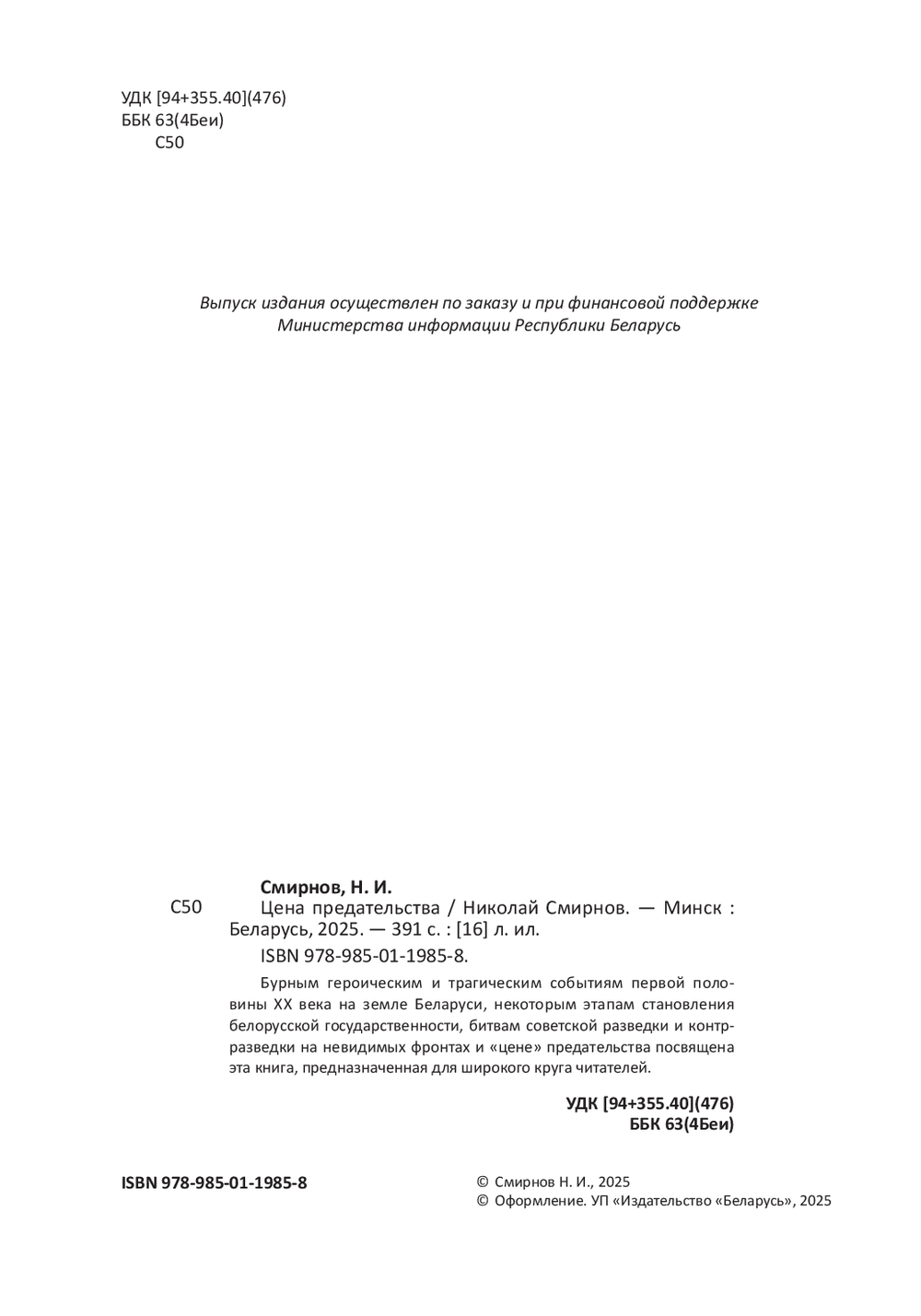 Бурным героическим и трагическим событиям первой половины ХХ века на земле Беларуси, некоторым этапам становления белорусской государственности, битвам советской разведки и контрразведки на невидимых фронтах и "цене" предательства посвящена эта книга, предназначенная для широкого круга читателей.