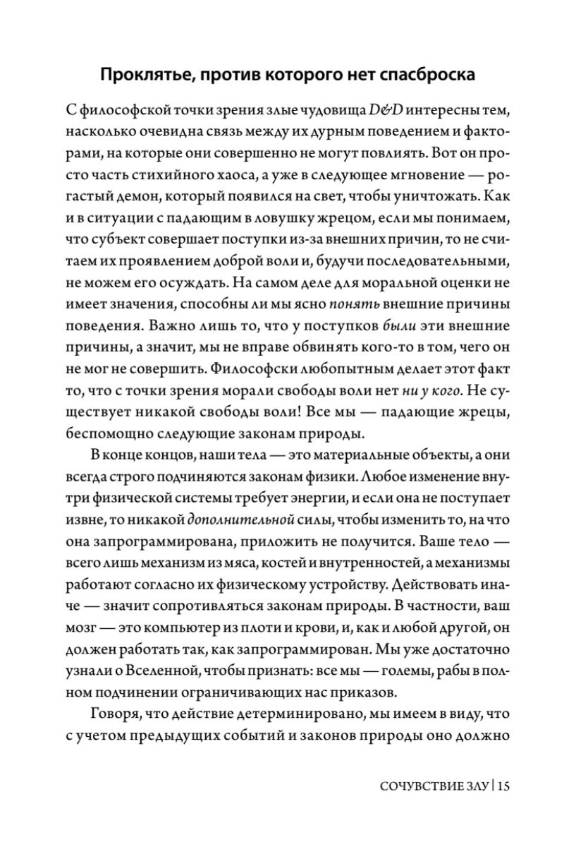 "Dungeons & Dragons и философия" – ваш путеводитель по подземелью философии, написанный в сеттинге D&D. Существует ли свобода воли, если за вас «решает» бросок к20? Что делает зло настоящим злом? Как выбирать между долгом, дружбой и выгодой, когда на кону не только жизнь персонажа, но и ваша собственная совесть? На эти и другие вопросы авторы отвечают, опираясь на опыт мировой философии, но вместо абстрактных дилемм разбирают реальные кейсы кампаний D&D.