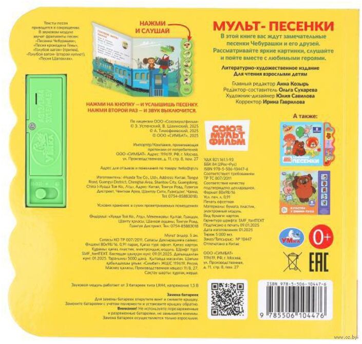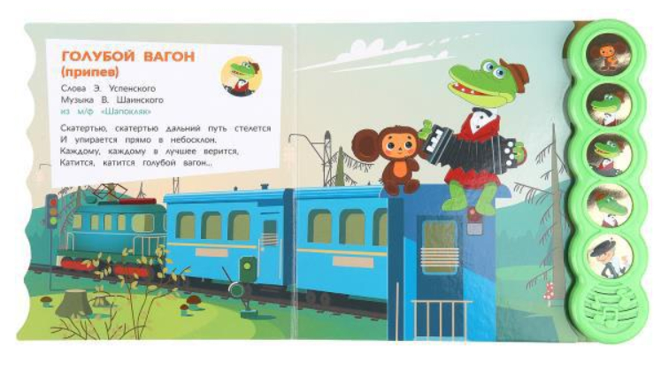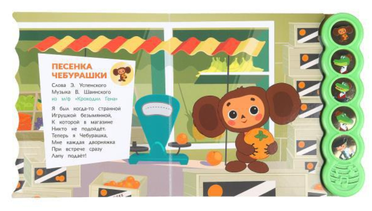 Ребёнок с удовольствием будет листать плотные страницы, рассматривать яркие картинки и, конечно, нажимать на кнопки и слушать весёлые песенки из любимого мультфильма. Малыш легко освоит включение звука: по нажатию на кнопку песенка включится, при втором нажатии выключится. Благодаря компактному размеру книгу удобно взять с собой в дорогу.