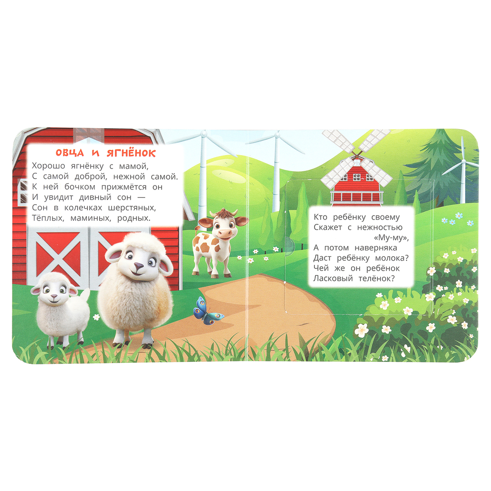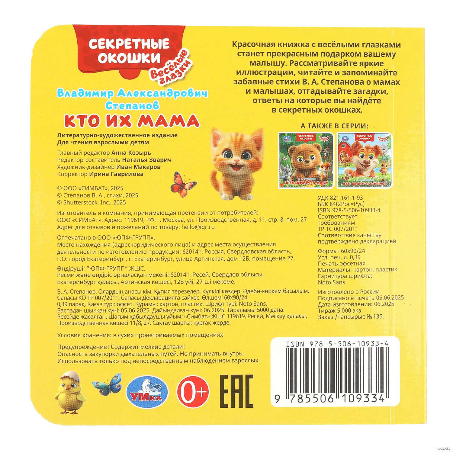 Яркая книга с интересными стихами Владимира Степанова непременно заинтересует ребёнка. Большие картинки, милые животные-малыши, подвижные глазки, благодаря которым персонаж выглядит совсем как живой, и волшебные окошки, за которыми кто-то или что-то прячется, не оставят равнодушным маленького читателя и подарят ему много весёлых и увлекательных минут игры с этой книгой. Компактный карманный размер издания позволяет взять её с собой даже в путешествие.